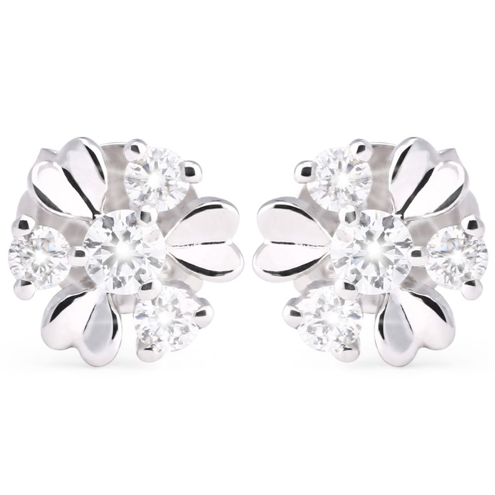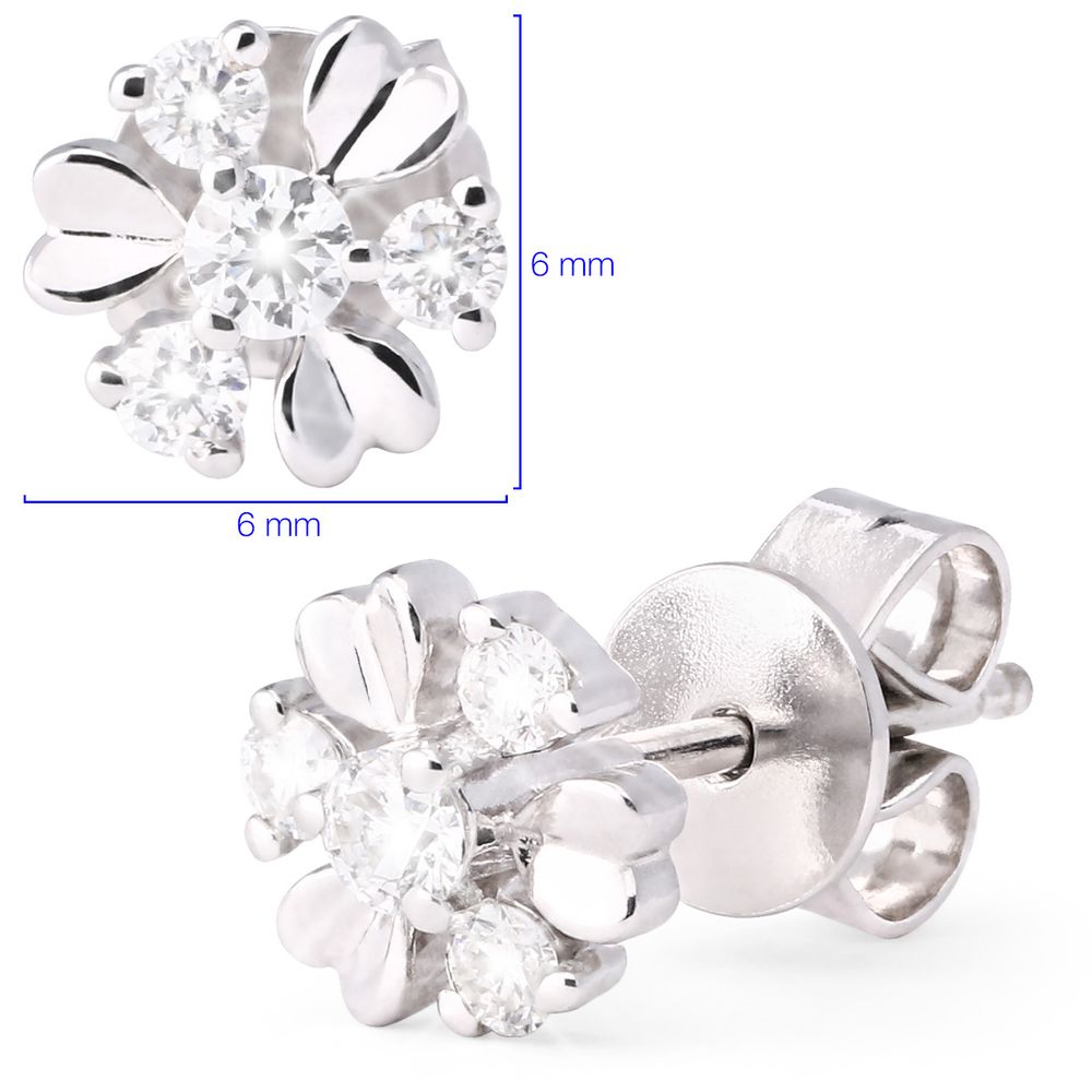 Confeccionado em ouro branco 18K e finalizado com polimento de alto brilho, o design em “florzinha”