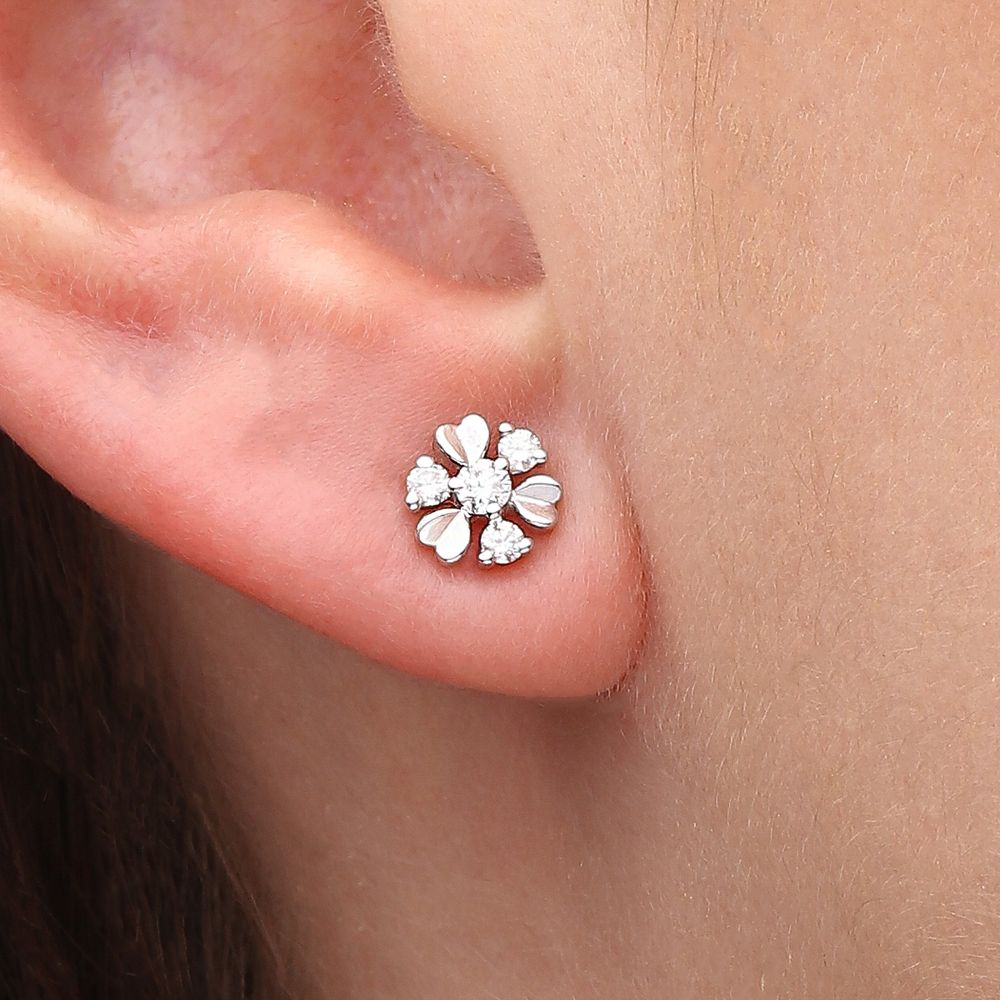 Delicado e encantador, este par de brincos em formato de flor traduz a beleza da natureza em uma joia sofisticada e atemporal.