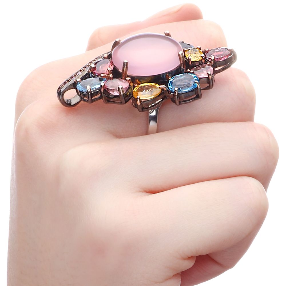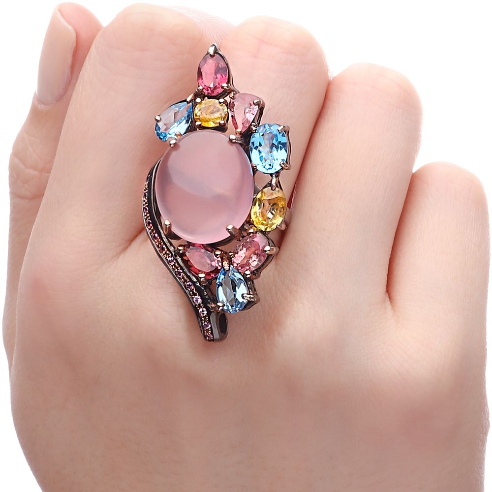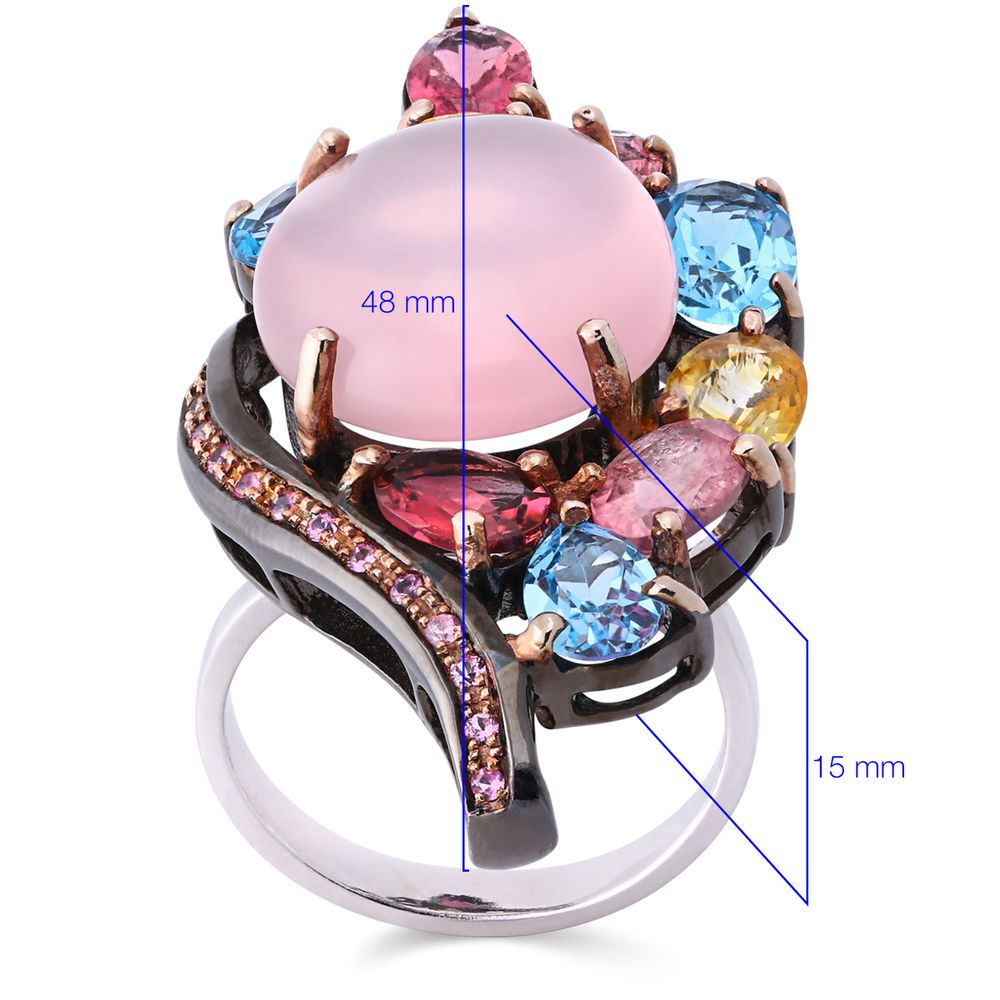 Em pedras: Quartzo Rosa, Topazios, Safiras Coloridas e Rodolitas Aprox. 23,40 cts
