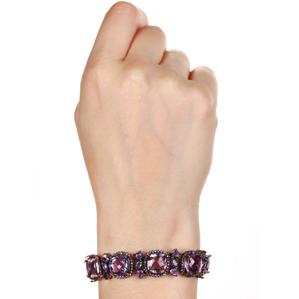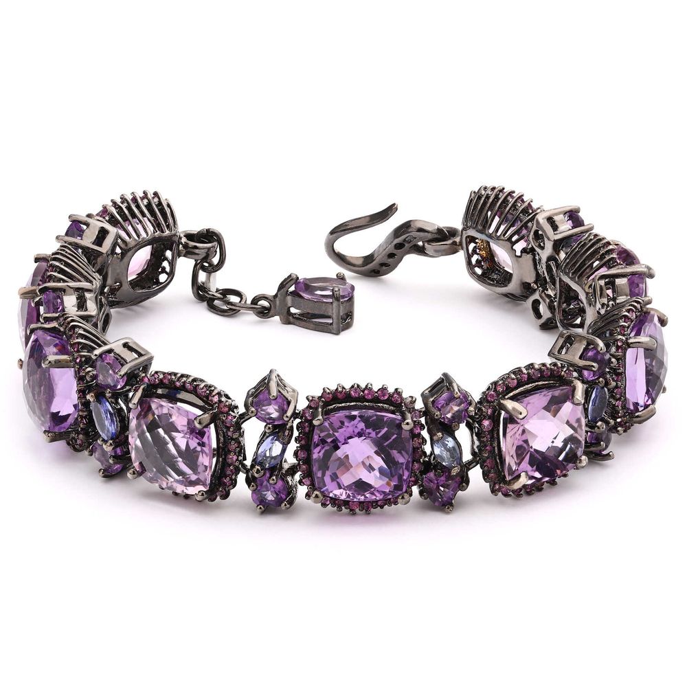 Em pedras: 26 Ametistas (41 cts), 256 Safiras Rosas (1,8 cts) e 8 Tanzanitas (1 ct) totalizando 43,8 cts em gemas.