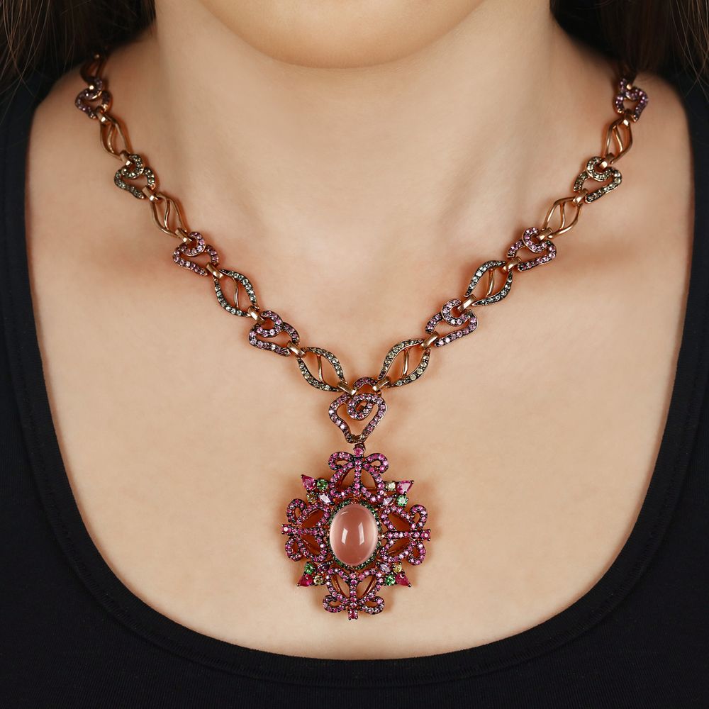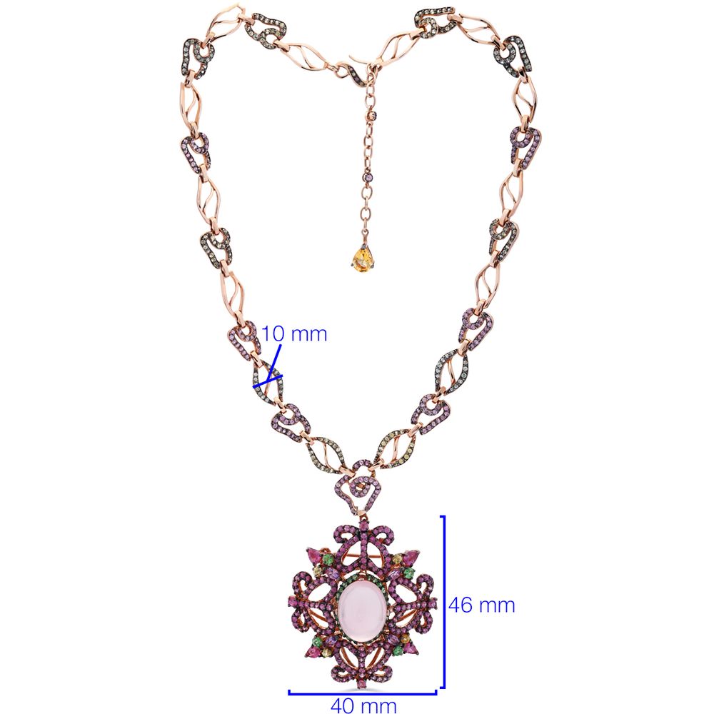 Em pedras:Quartzo Ros,Ametista,Granadas Verdes,Safiras (tot. aprox. 28,60 Cts) Prata
