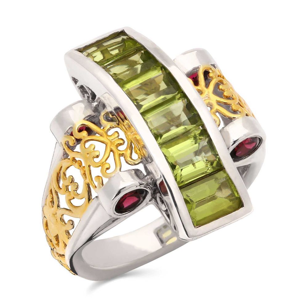 Em pedras: Peridoto e Rodolitas (4,58 cts)