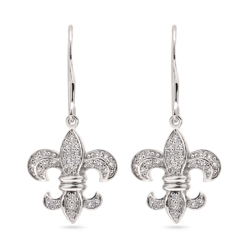 Par de Brinco de Prata Flor de Lis com Zirconias