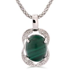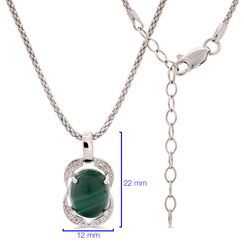 Pingente Em Prata 925 com Malaquita Oval e Diamante