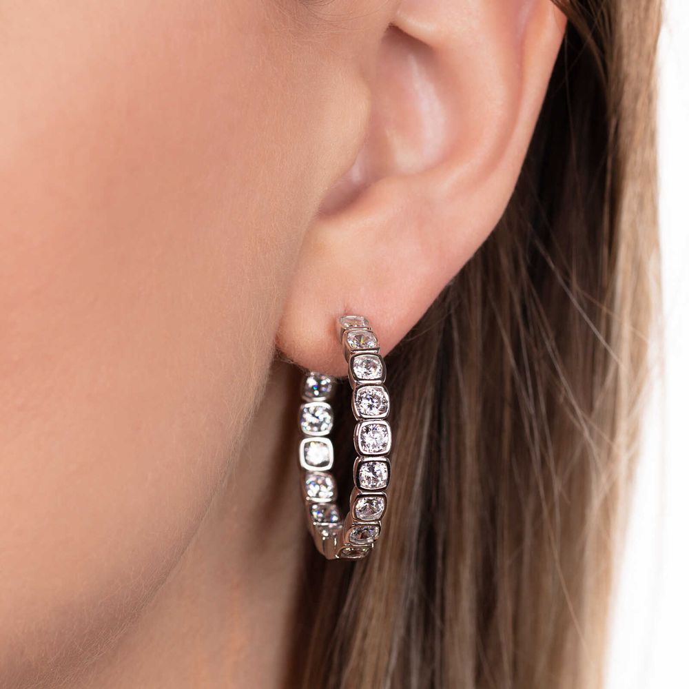 Par de Brinco Argola de Prata com Zirconias