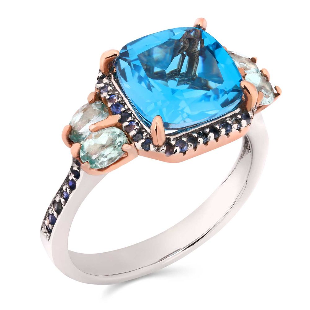 Em pedras:Tópazio Azul,Apatitas,Safiras Azuis (Aprox. 5 cts)