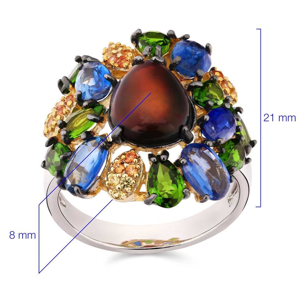 Em pedras: Opala,Crome Diopside,Kianites,Safiras Laranjas (Aprox. 5,7 cts)