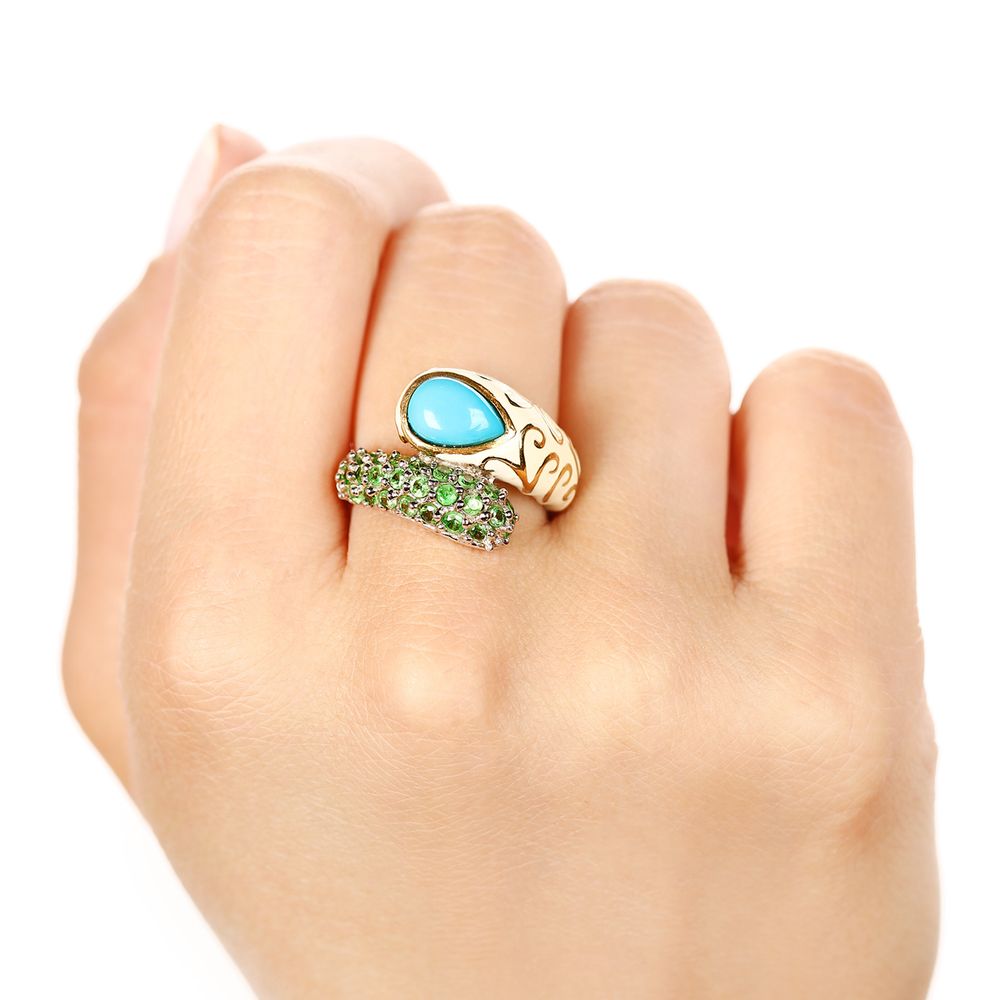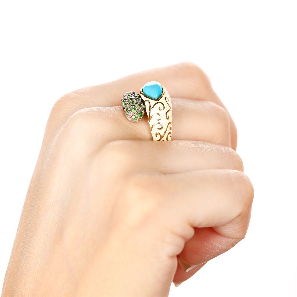 Anel Turquesa com Detalhe em Mina, 24 Granadas Verdes Aprox 1,9 Cts ( Aro 17) Prata