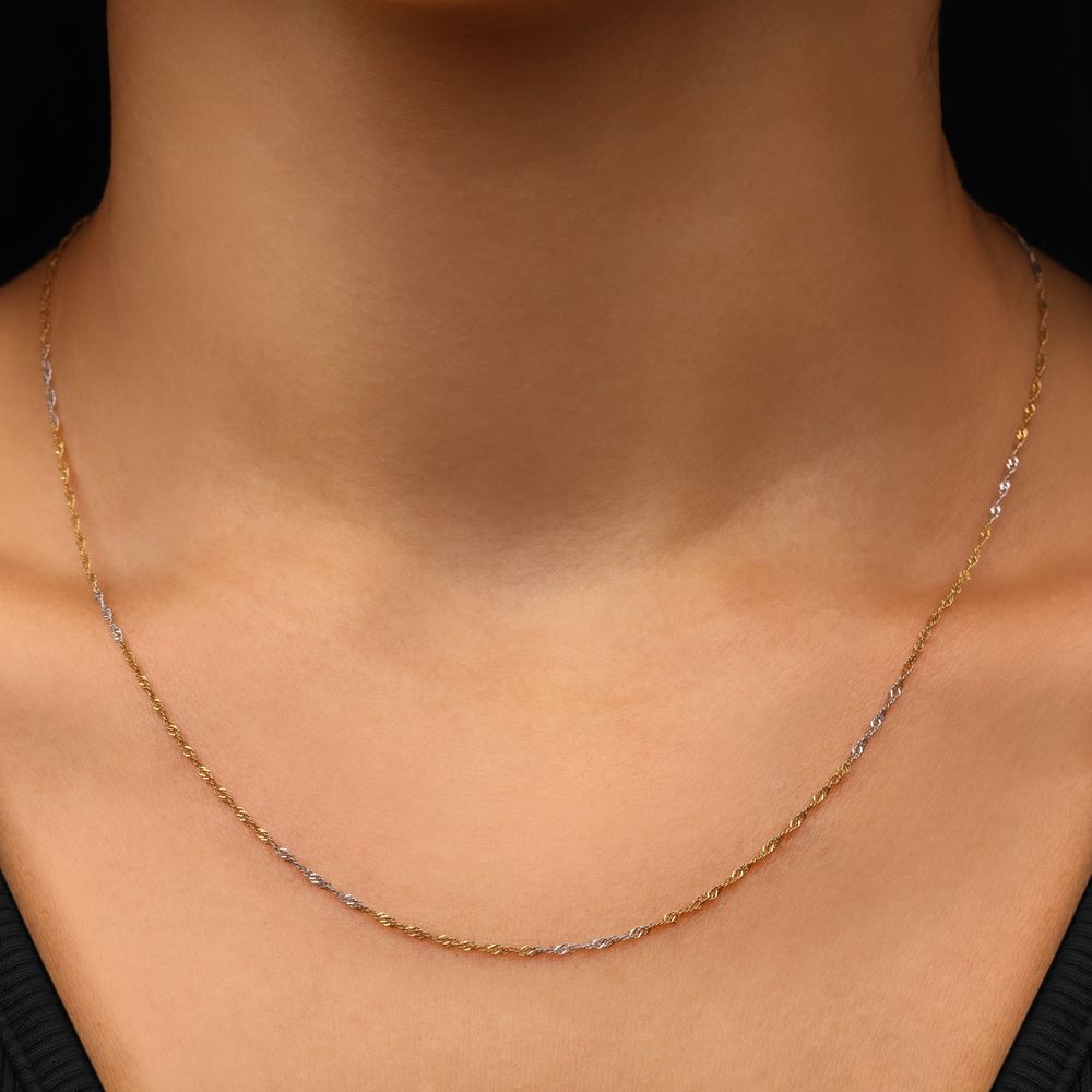 Corrente Malha Singapura 45 cm Ouro Amarelo e Ouro Branco 18k - medalhaopersa