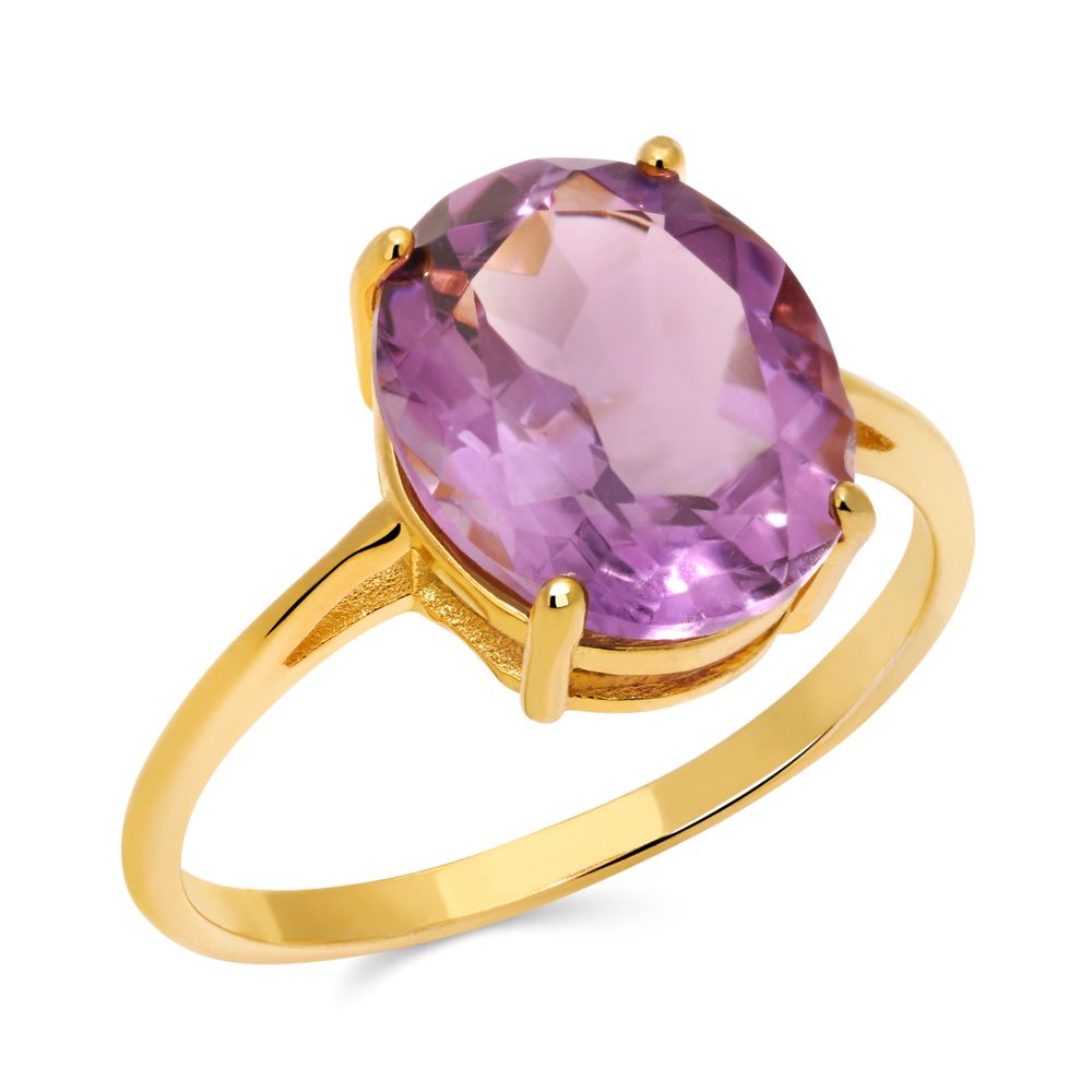 Anel em Prata 925 Oval com Ametista Verde Banho Ouro Amarelo 188042 |