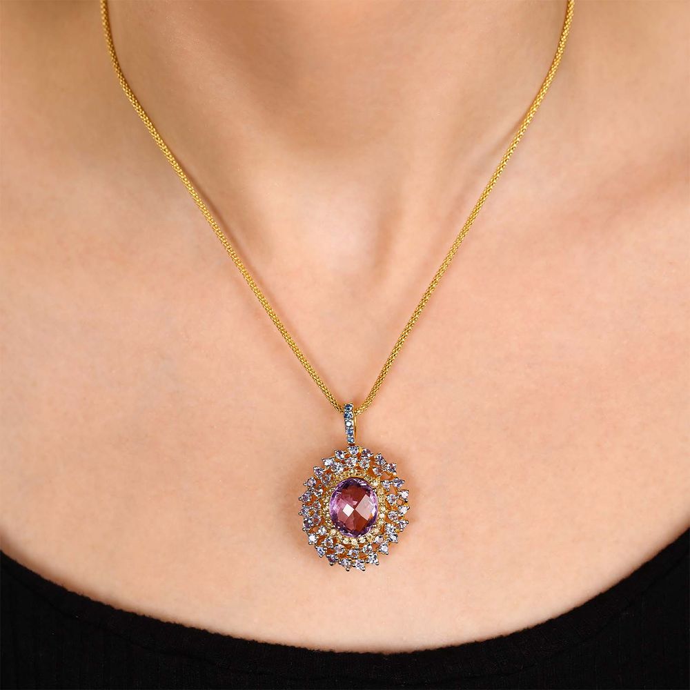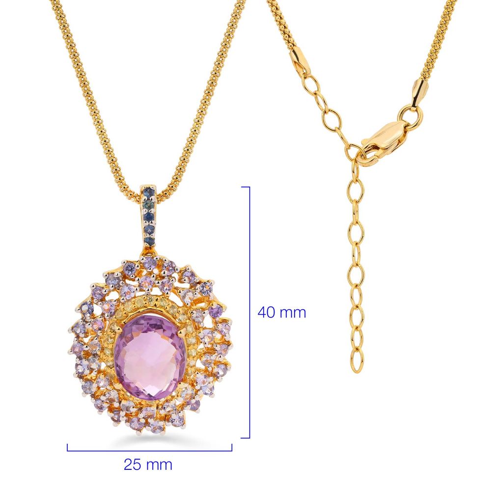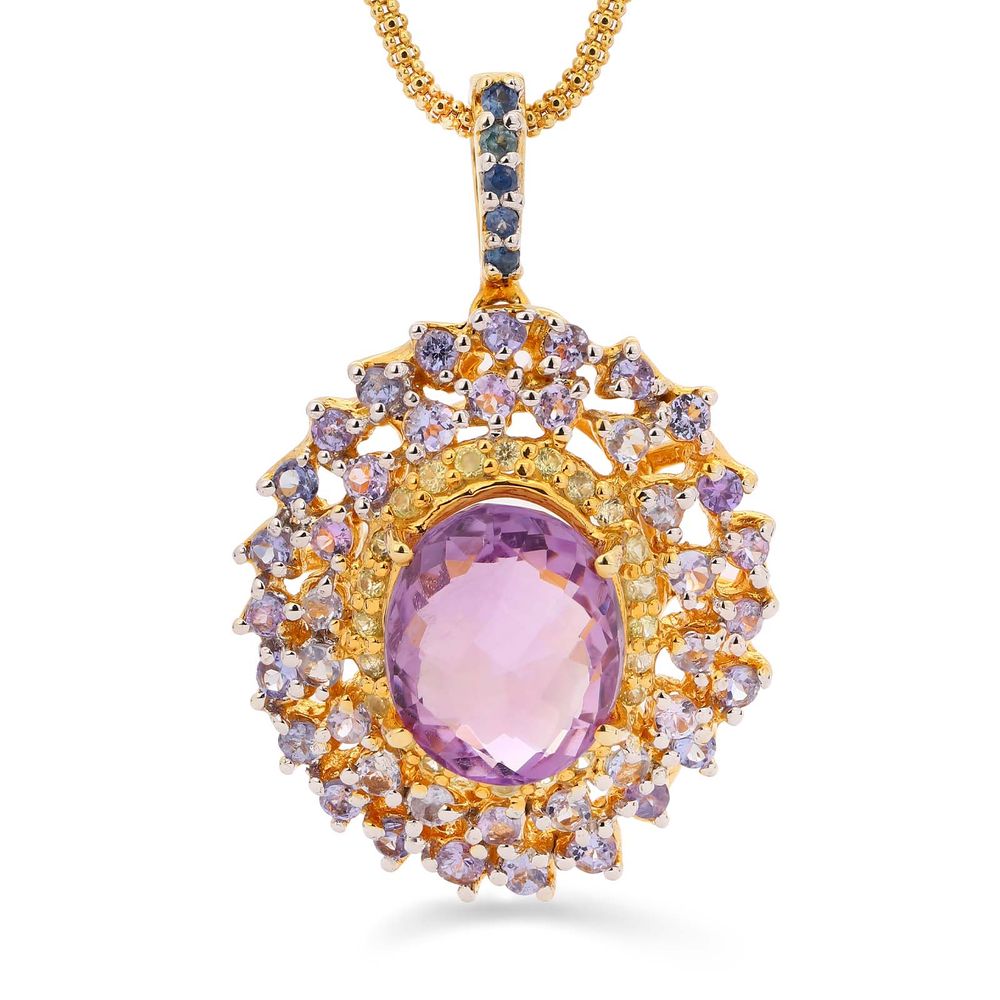 Pingente de Prata Luxo com Ametista, Tanzanitas, Safiras Amarelas e Safiras Azuis