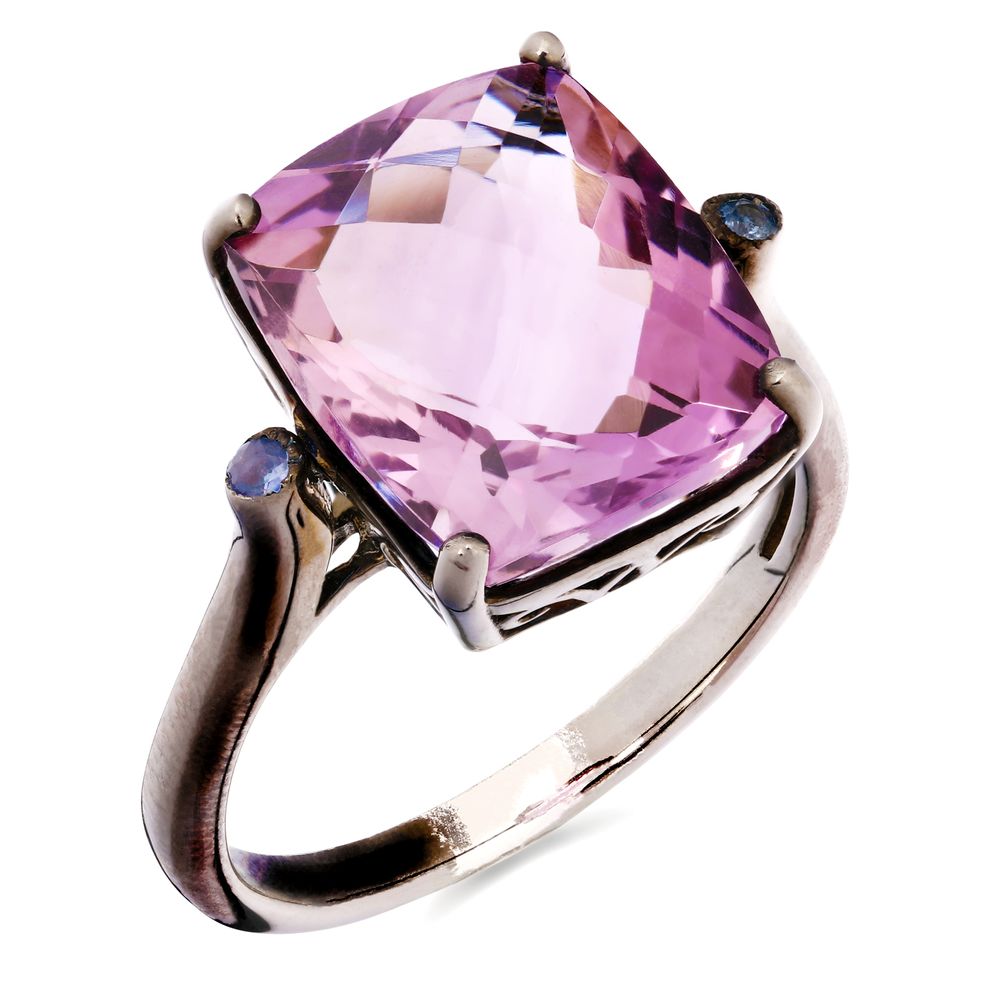Anel Ametista e 2 Safiras Azuis Aprox 12,23 Cts Prata
