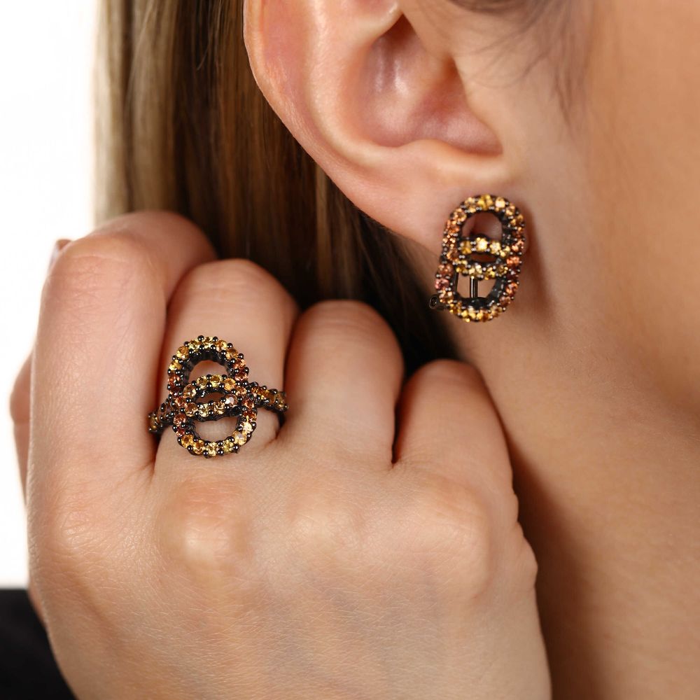 Em pedras: 96 Safiras Laranjas (3 cts)
