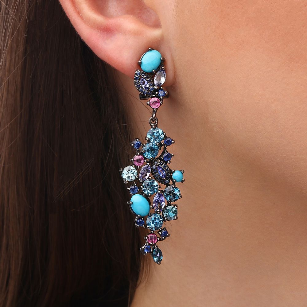 Em pedras:Safiras Azuis,Topázios Azuis,London Blue,Safiras Rosas,Tanzanitas,Zircônia, Turquesas Prata (tot.aprox. 15,9 cts)