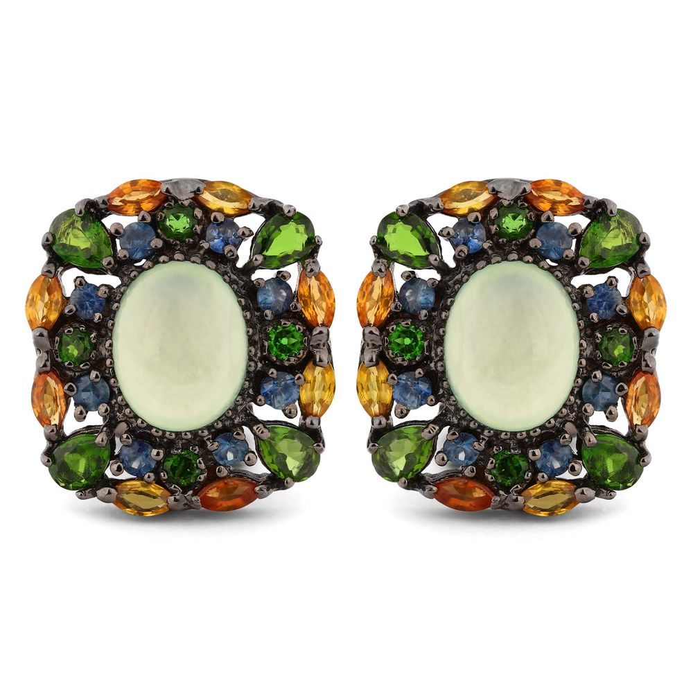 Par de Brinco de Prata Prenita, Chromediopsides e Safiras Coloridas