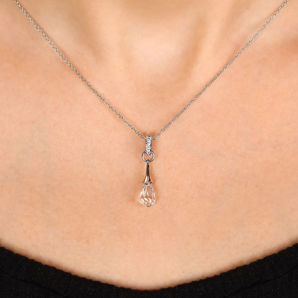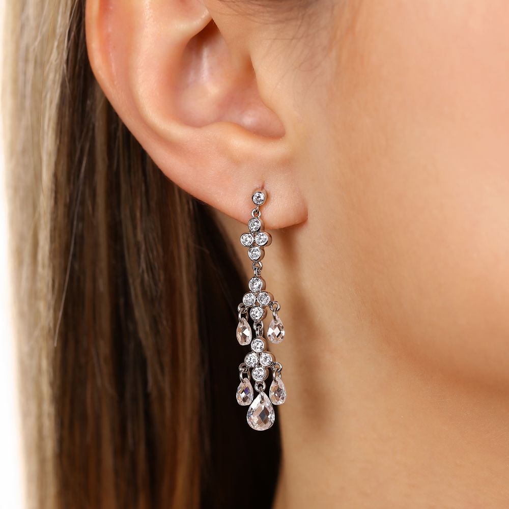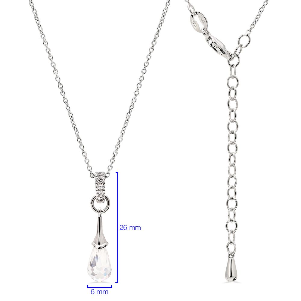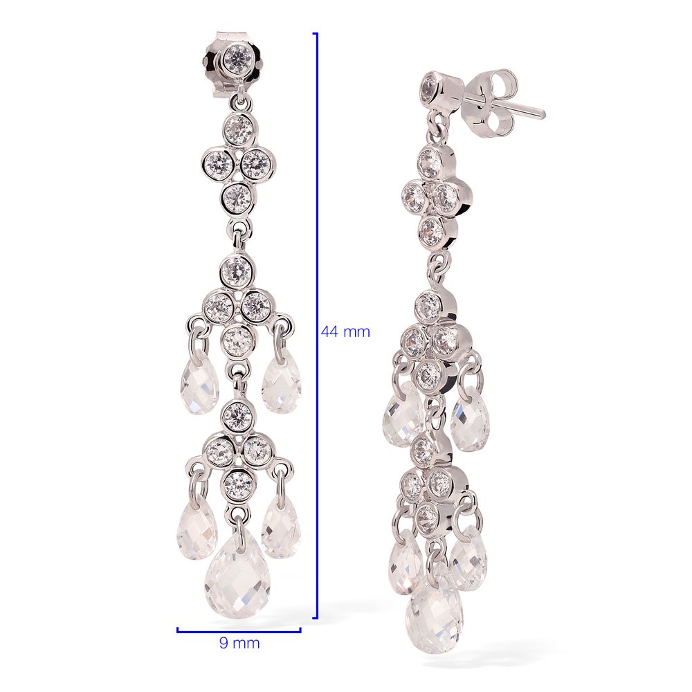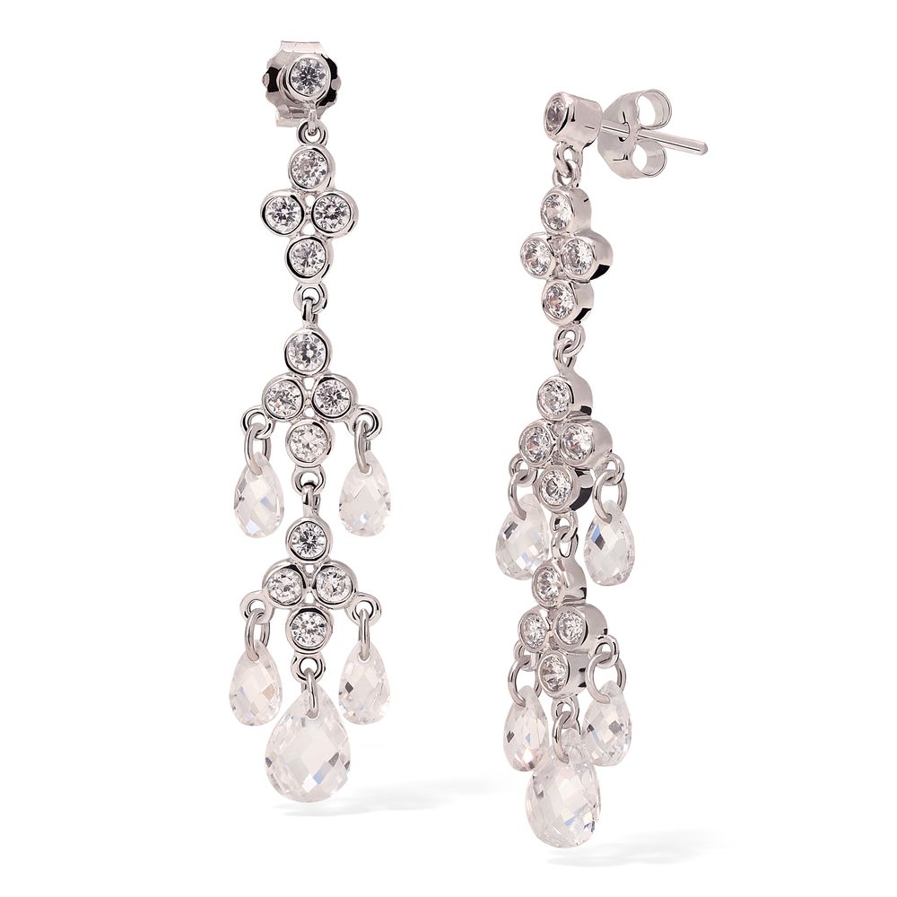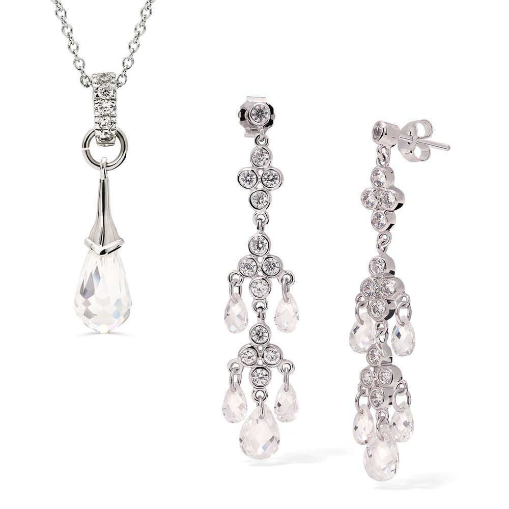 Pingente e Par de Brinco em Prata 925 Chandelier com Gota Briolet de Zirconias