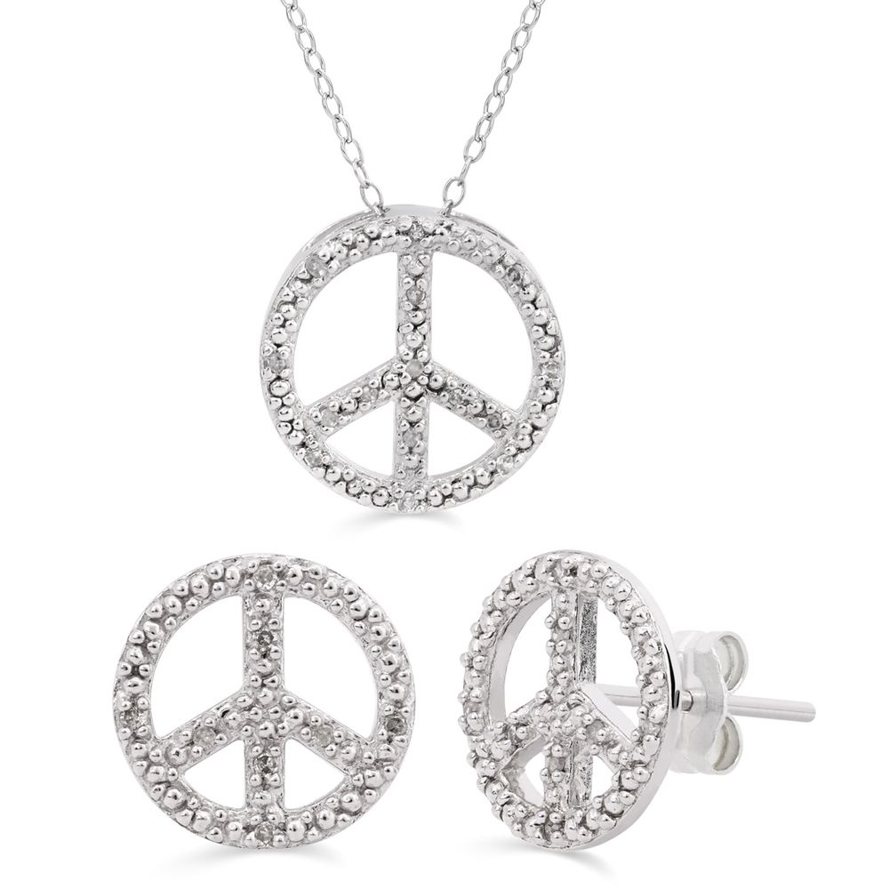 Par de Brinco e Pingente em Prata 925 Paz e Amor com Zircônias