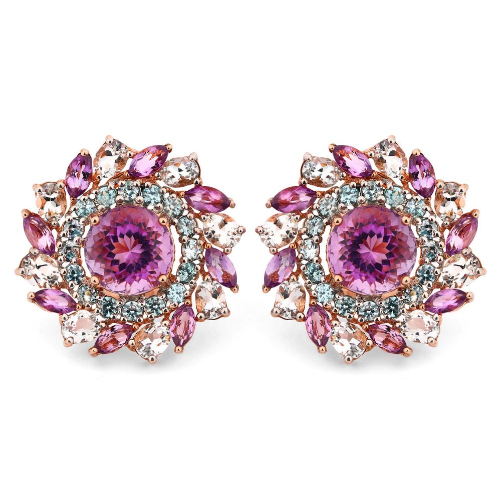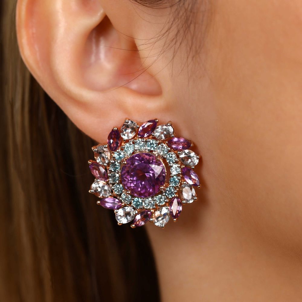 Par de Brinco em Prata Luxo Flor com Ametistas e Zirconias
