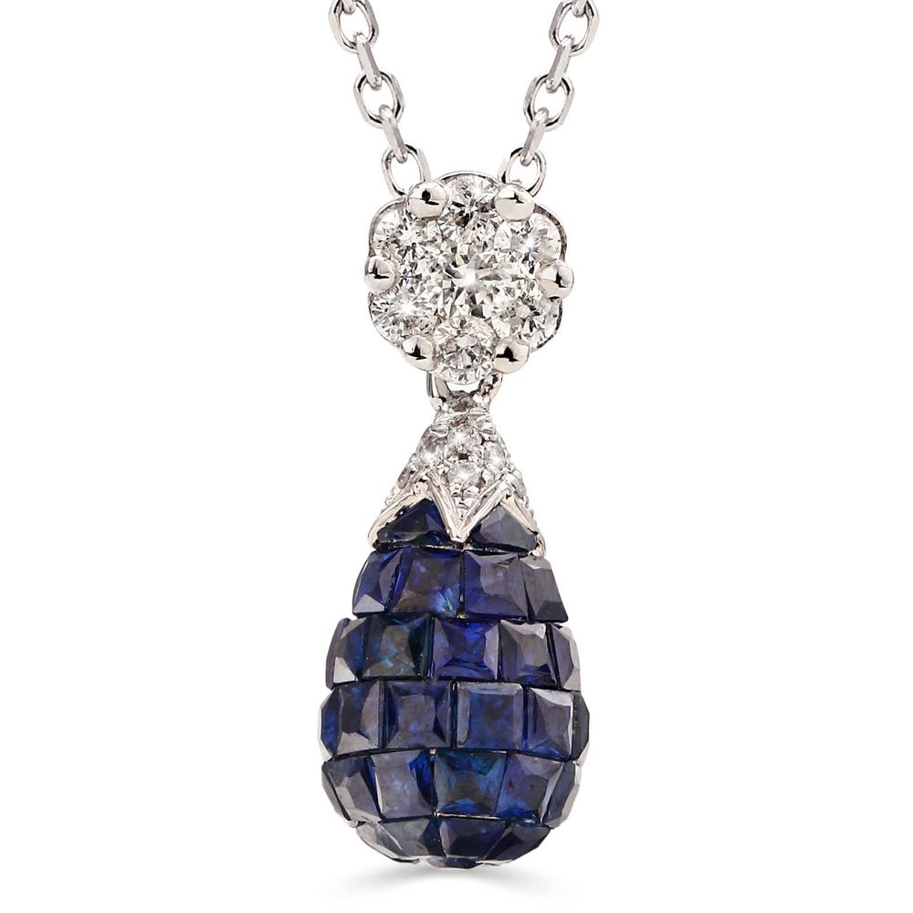 Pingente de Ouro Florzinha com Safiras Azuis e Diamantes Brancos