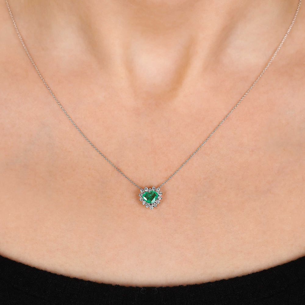 Pingente de Ouro Coração de Esmeralda e Diamantes Brancos