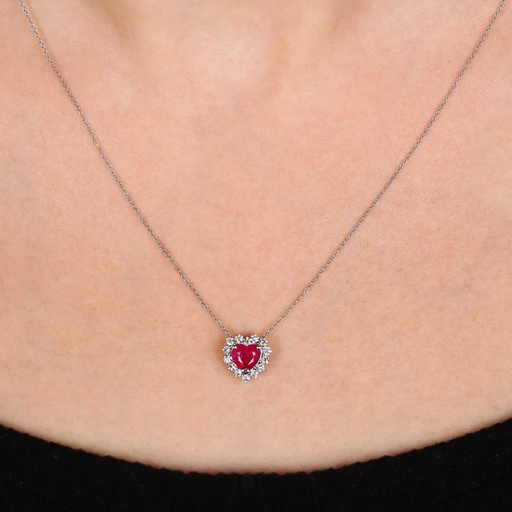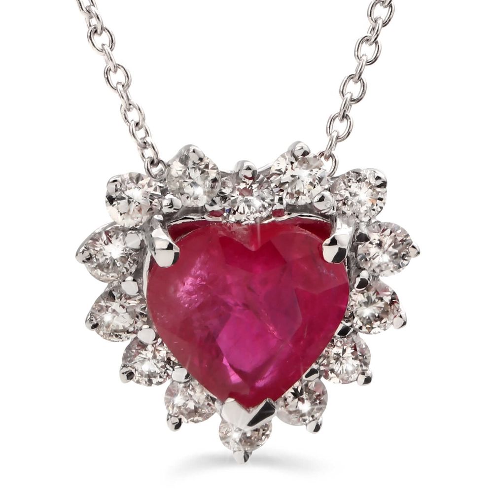 Pingente de Ouro Coração com Rubi e Diamantes Brancos
