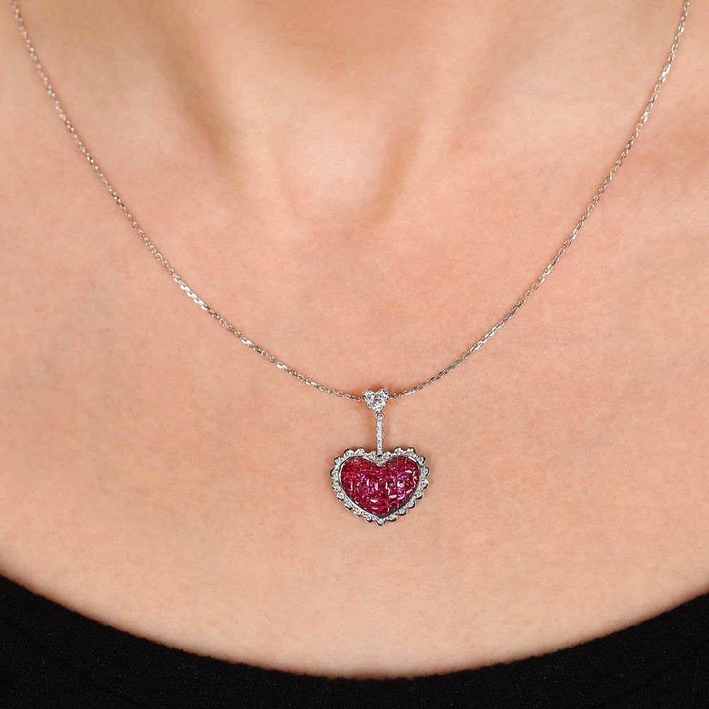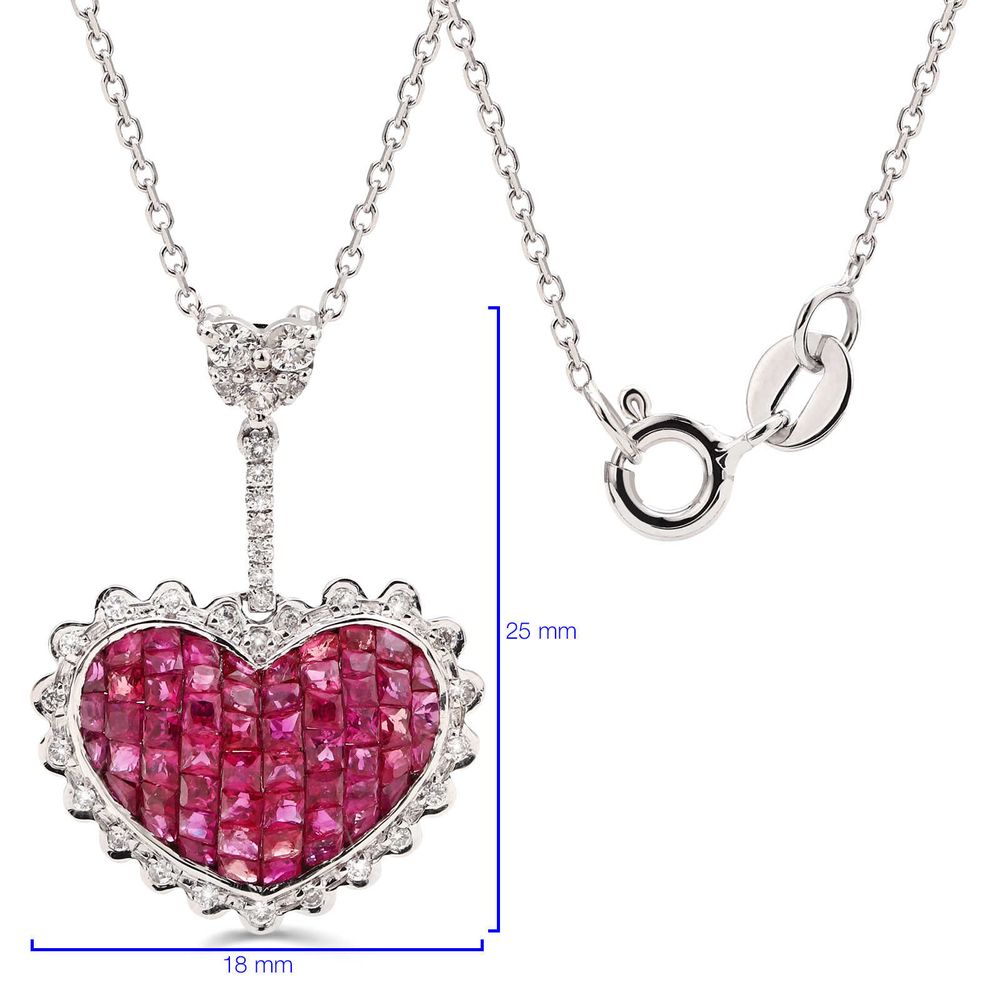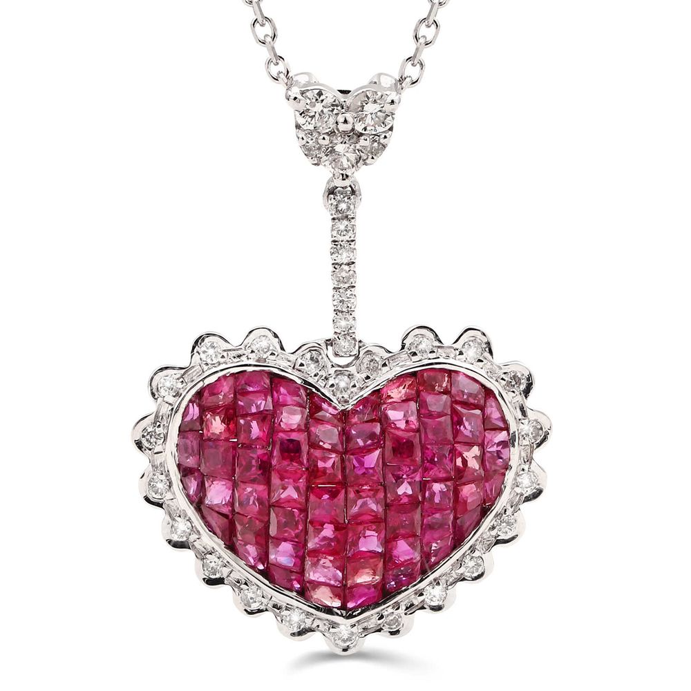 Pingente de Ouro Coração com Rubis e Diamantes Brancos