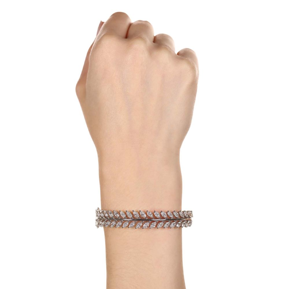 Bracelete em Ouro Branco 18k Folhas com 38 Diamantes Brancos Aprox. 5,55 cts