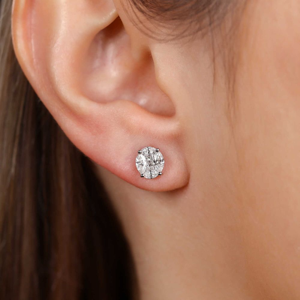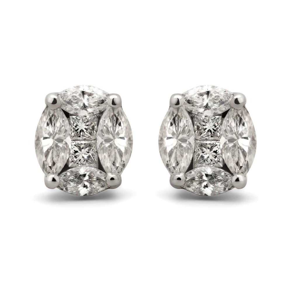 Par de Brinco em Ouro Branco 18k com Safiras Azuis e Diamantes Brancos
