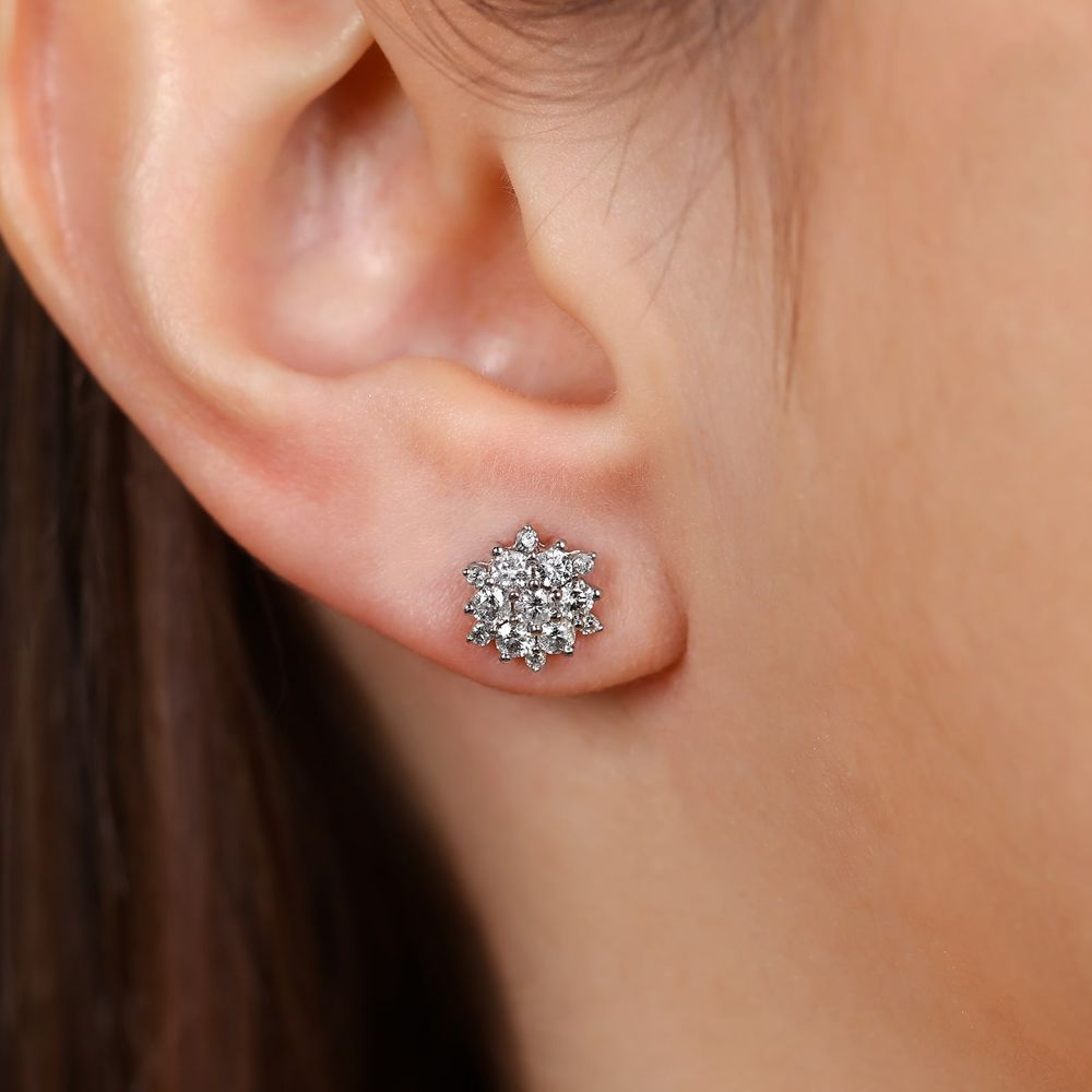 Par de Brinco em Ouro Branco 18k Florzinha com Diamantes
