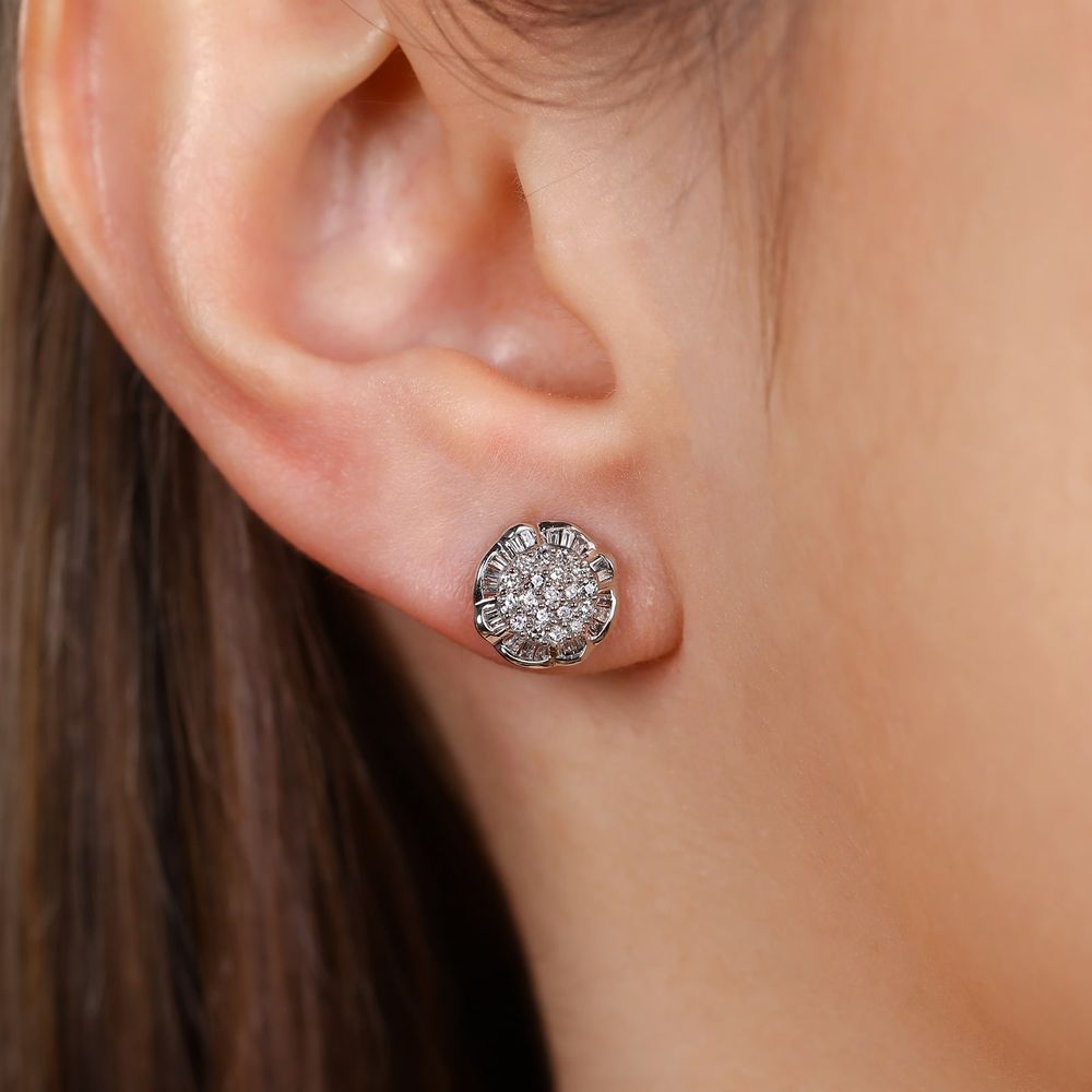 Par de Brinco em Ouro Branco 18k com Diamantes