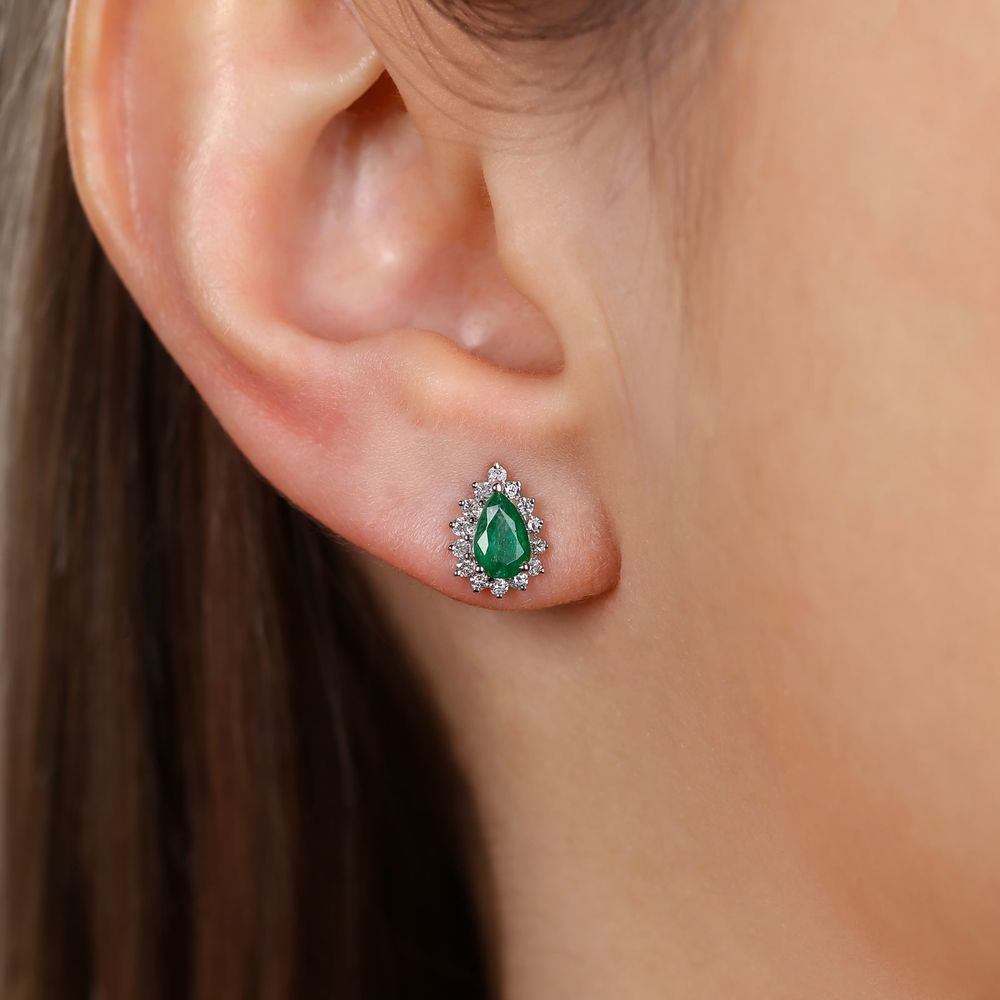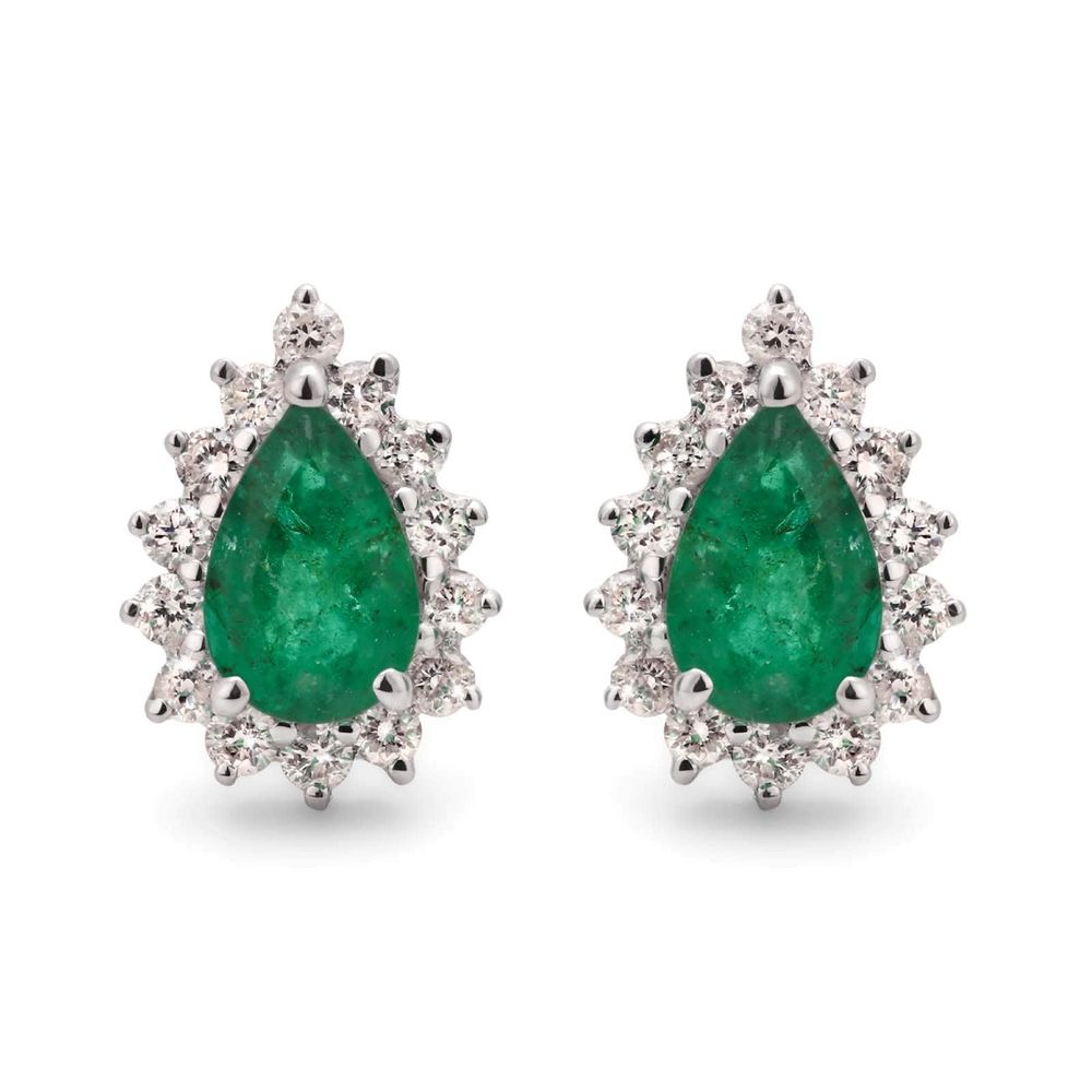 Par de Brinco com esmeralda gota e diamantes.