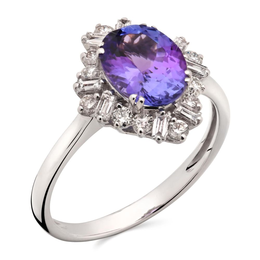 Em pedras: Tanzanita (1,7 cts) e 20 Diamantes (50 pts)