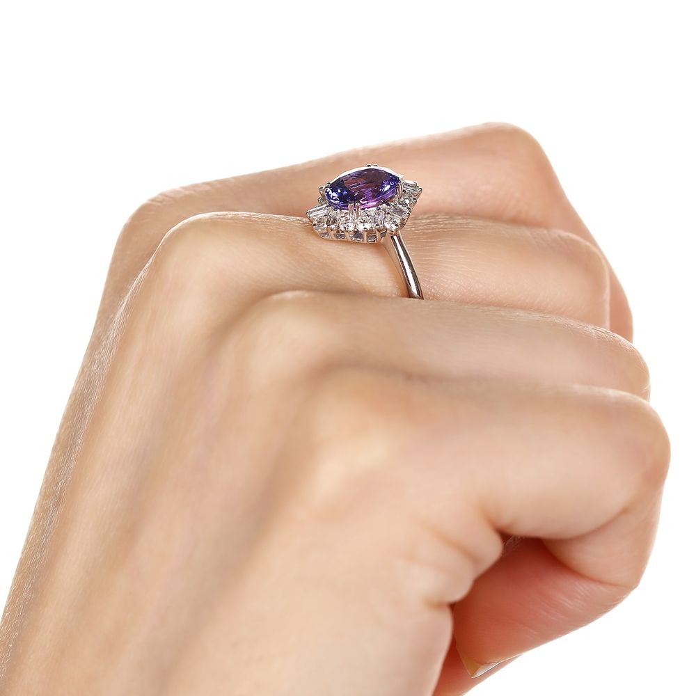 Um azul violeta luminoso parece estar aprisionado dentro da gema, a energia da pedra preciosa é intensa e a coloração única no mundo.