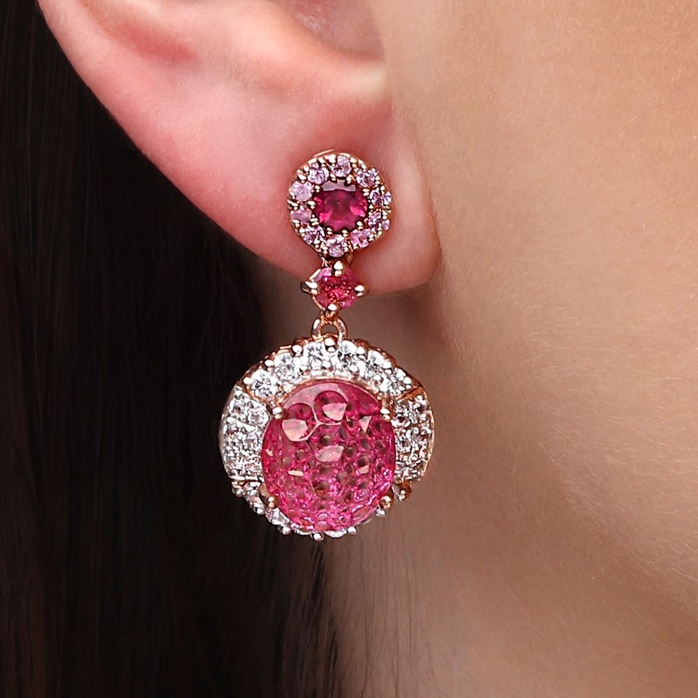 Em pedras: Topazios Rosas, Zirconias, Safiras Rosas e Turmalinas Rosas Aprox. 15,68 cts