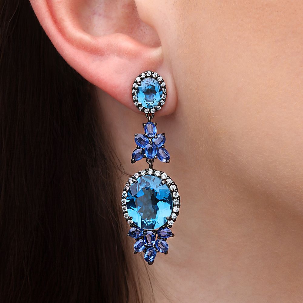Em pedras: Topazios London Blue, Kianites e Zirconias Aprox. 25,51 cts
