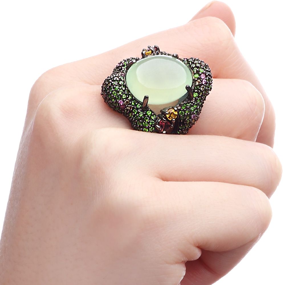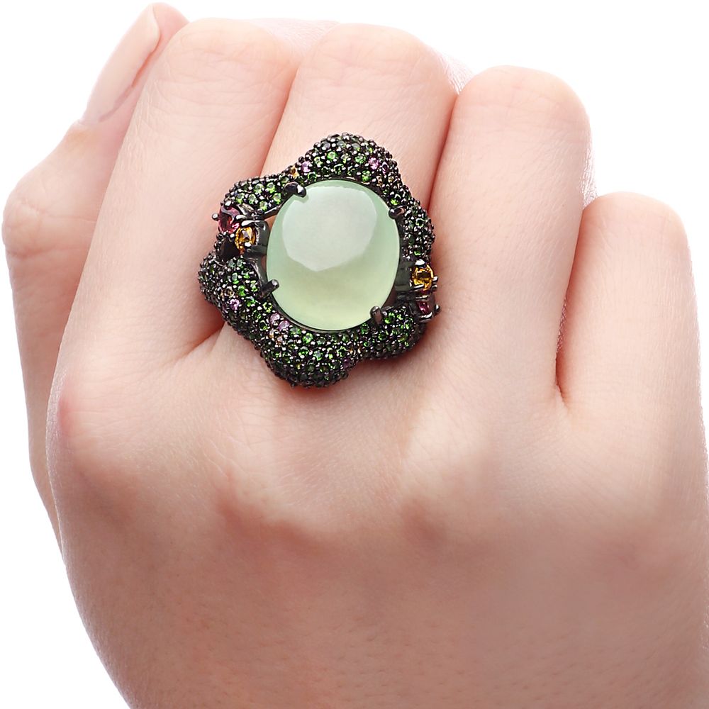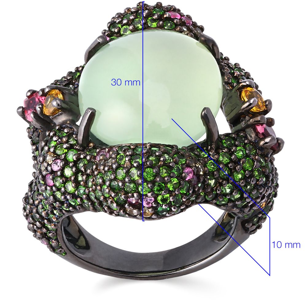 Anel Prata Luxo com Prenita, Chromediopsides, Safiras Rosas, Safiras Amarelas e Turmalinas Rosas