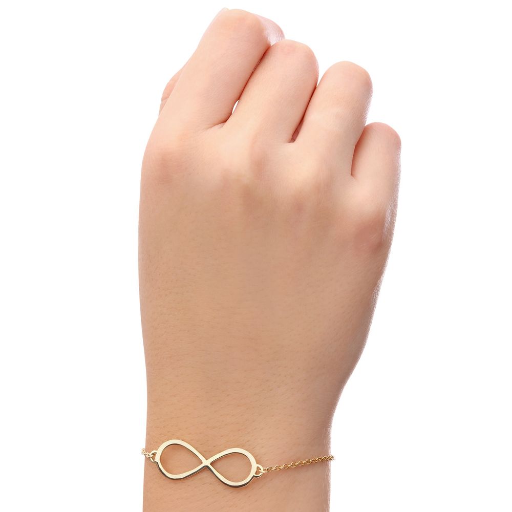 A pulseira em ouro amarelo com símbolo do infinito representa aquilo que não tem começo nem fim: amor, conexão e eternidade. Com um design delicado e sofisticado, ela é perfeita para quem valoriza joias atemporais que carregam significado.