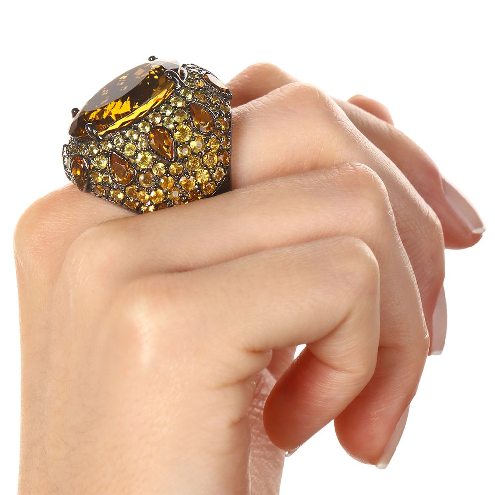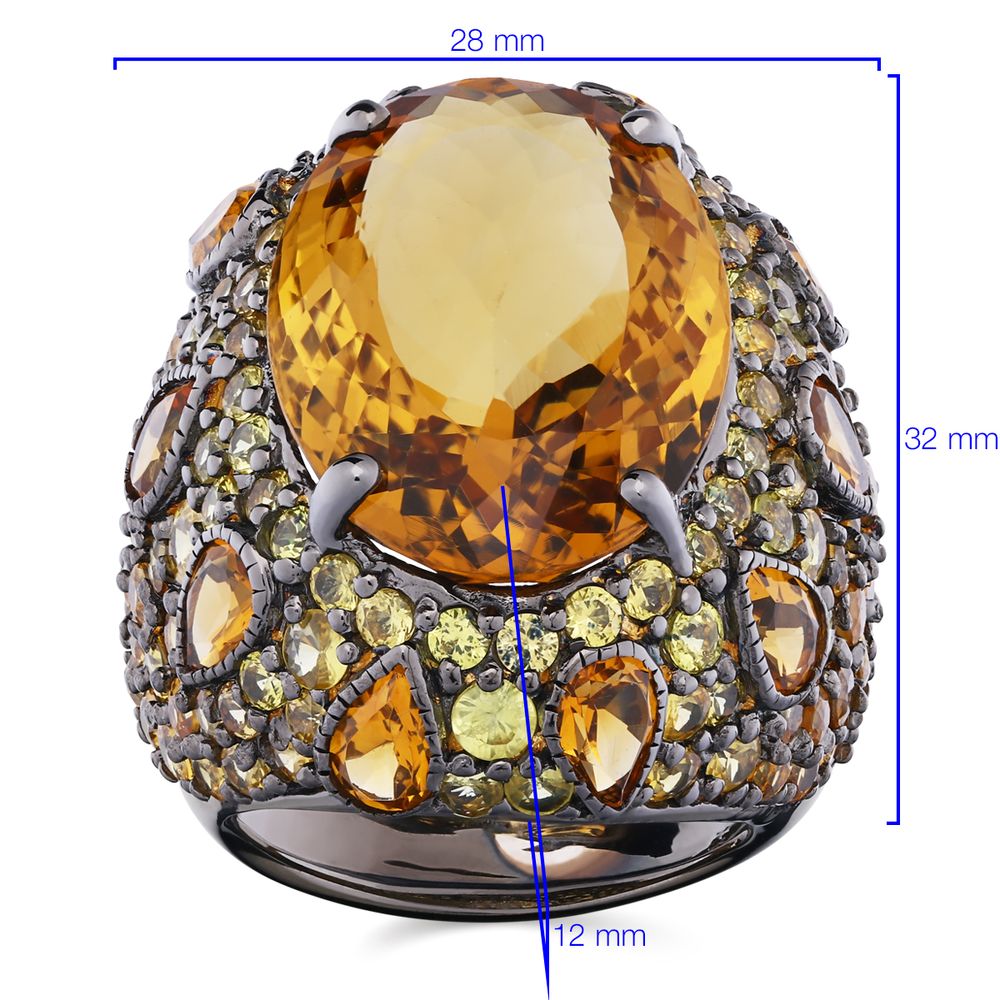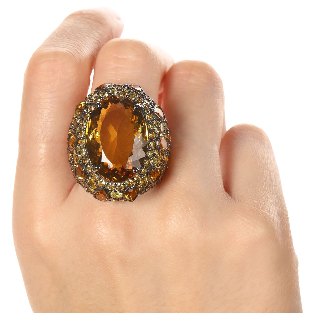 Anel Com Citrinos, Safiras Laranjas, Safiras Amarelas Prata