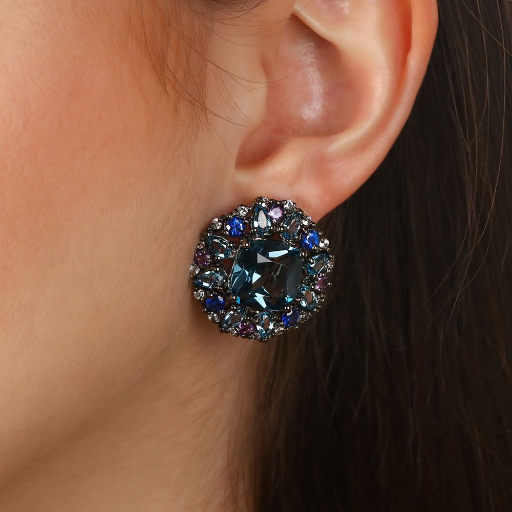 Em pedras:London Blue,Ametistas,Safiras Azuis,Zircônias Prata (tot. aprox. 24 Cts)
