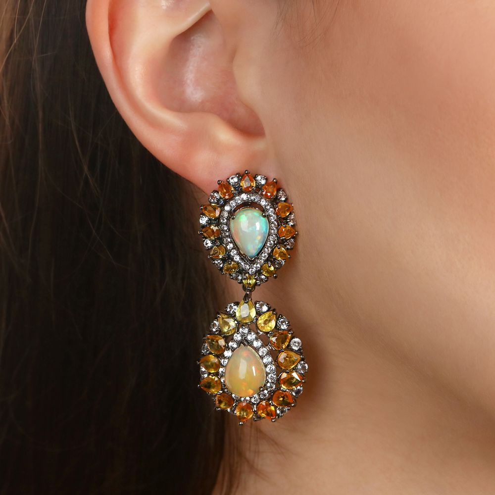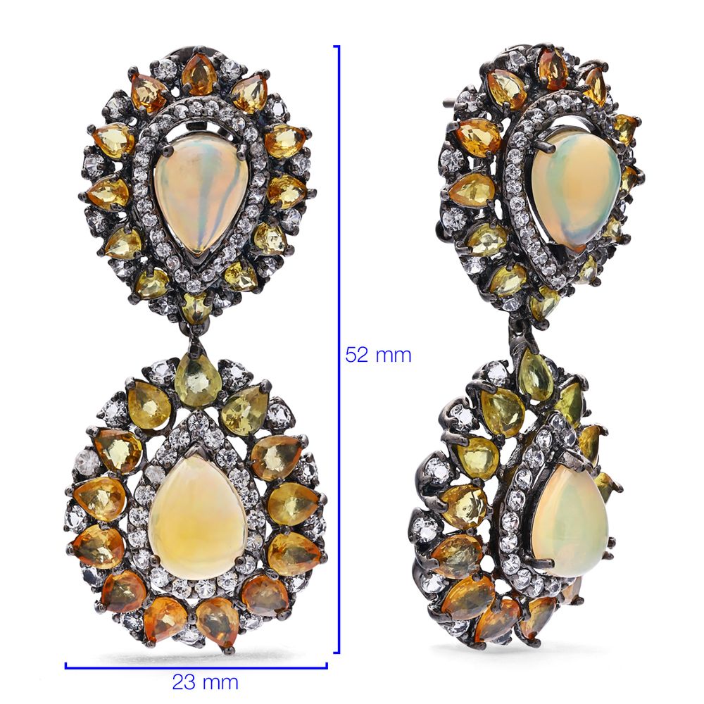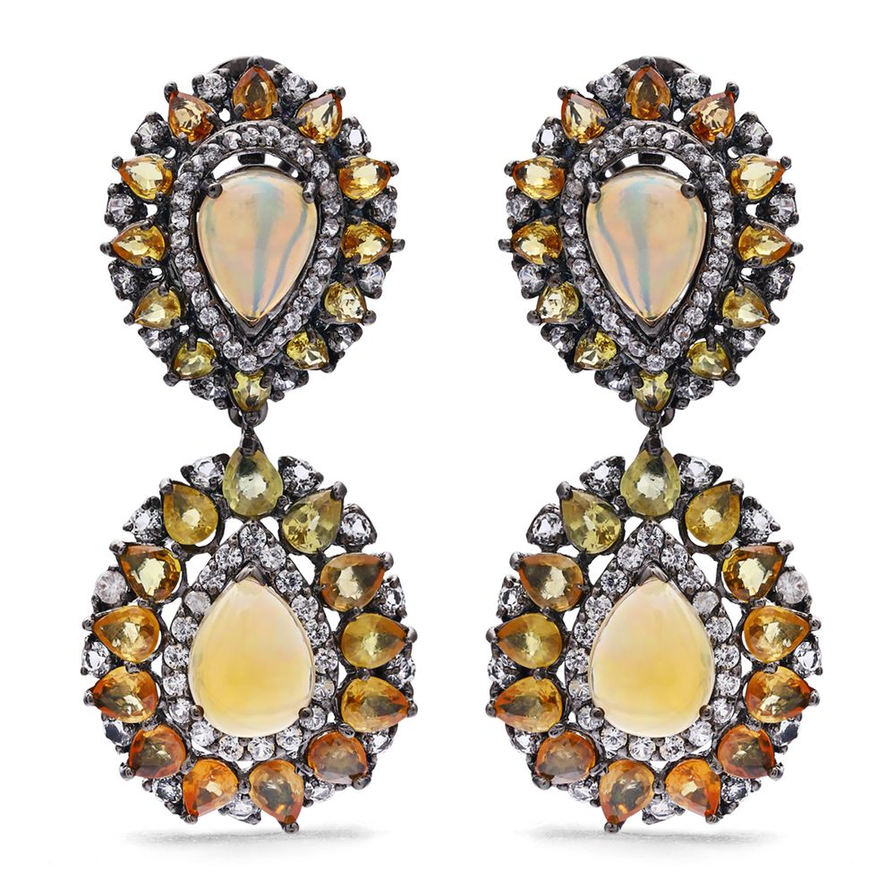 Em pedras: Opalas, Safiras Laranjas e Amarelas e Zircônias Aprox. 22,5 cts