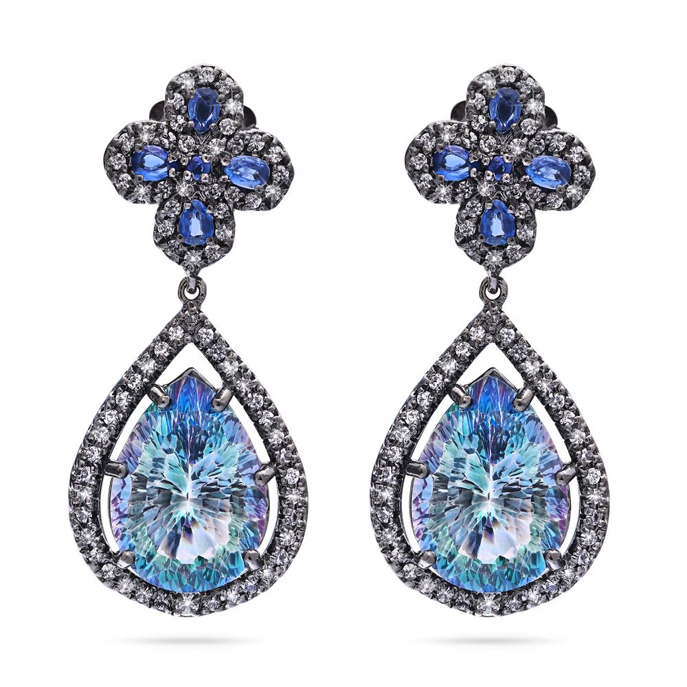 Em pedras: Topázios Misticos, Safiras Azuis, Kianites Aprox. 32 cts