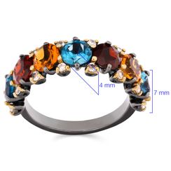 Anel Com Ametistas, Tanzanitas,Safiras Coloridas com Detalhe Banho Ouro Rosé Prata