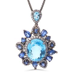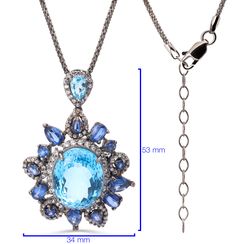 Pingente em Prata Luxo com Topazios Azuis, Kianites e Zirconias