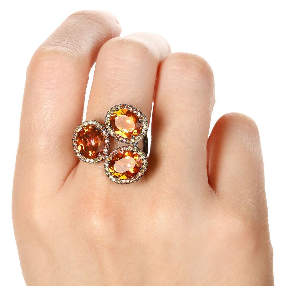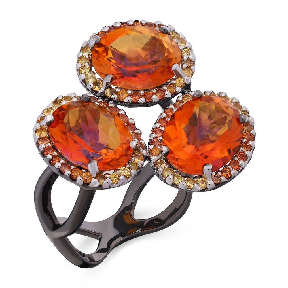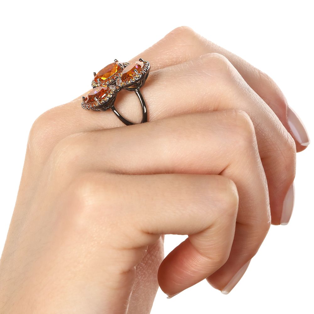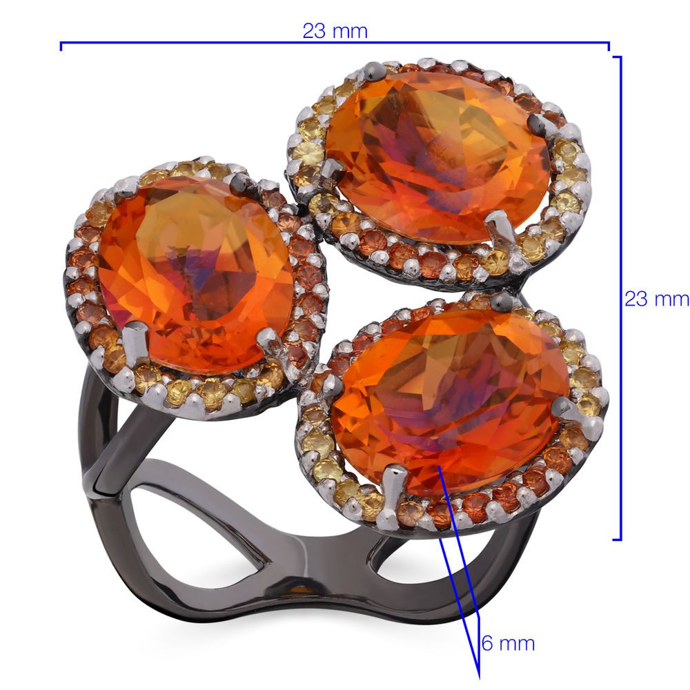 Anel Com Quartzo Laranja, Safiras Laranjas Com Ródio Negro Prata