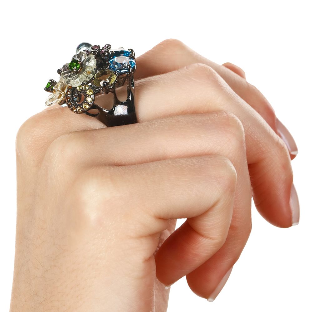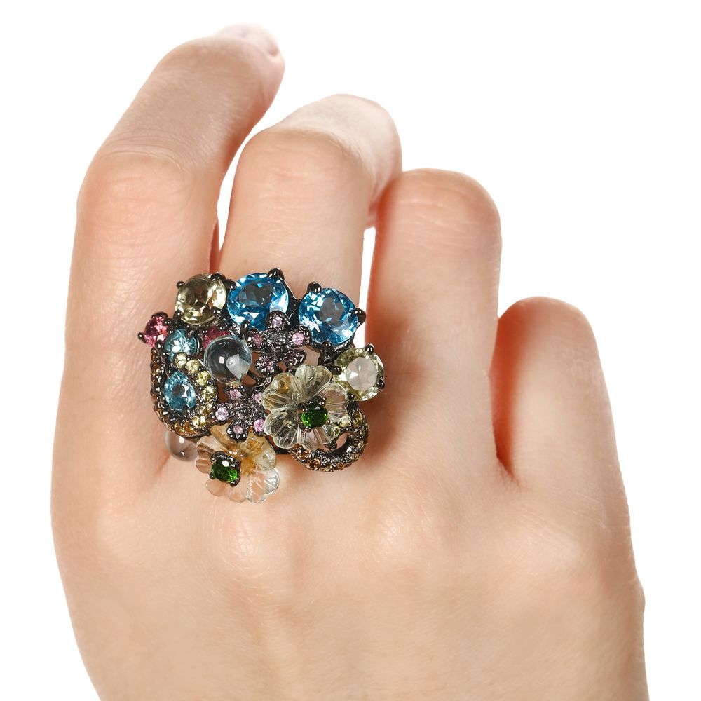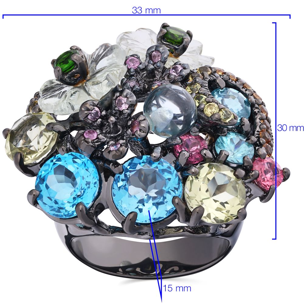 Em pedras: Ametistas Verdes,Topázios Azuis,Quatzo Limão,Turmalinas Rosas,Zircônias,Safiras Rosas,Safiras Laranjas,Cromediopsid (19 Cts)