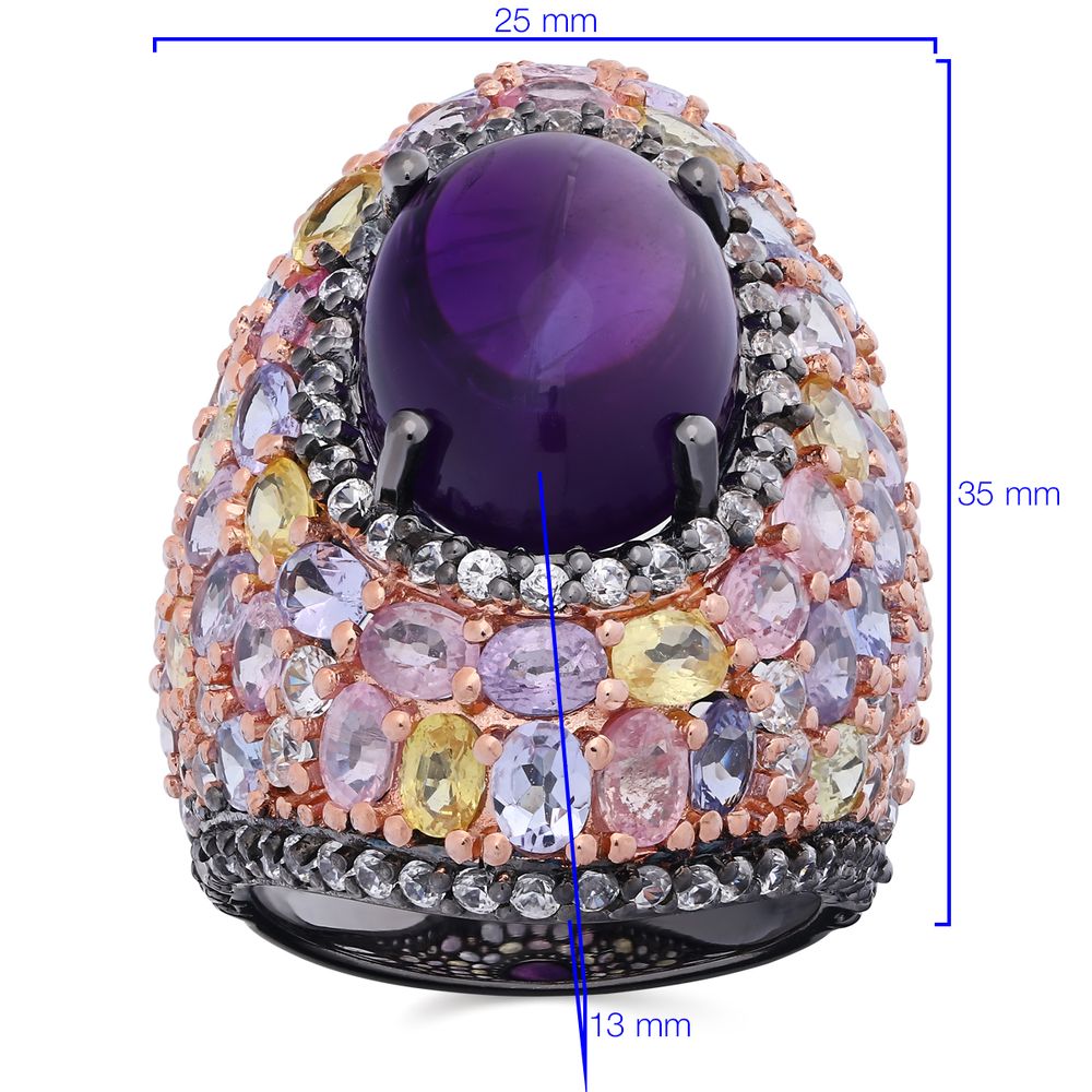 Anel Com Ametistas,Tanzânitas,Zircônias,Safiras Coloridas Banho Ouro Rosé Prata