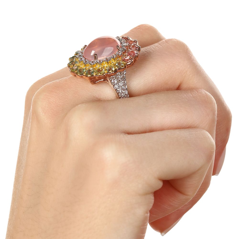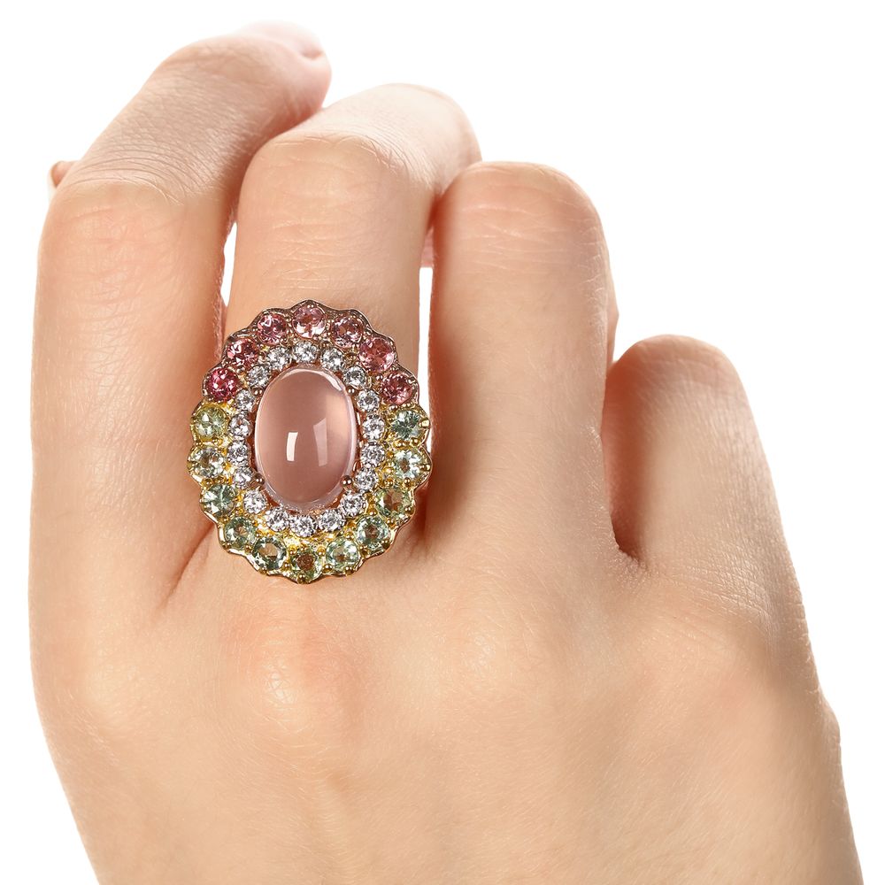 Em pedras:Quartzo Rosa, Turmalinas Coloridas e Zircônias (tot. aprox. 10 cts)