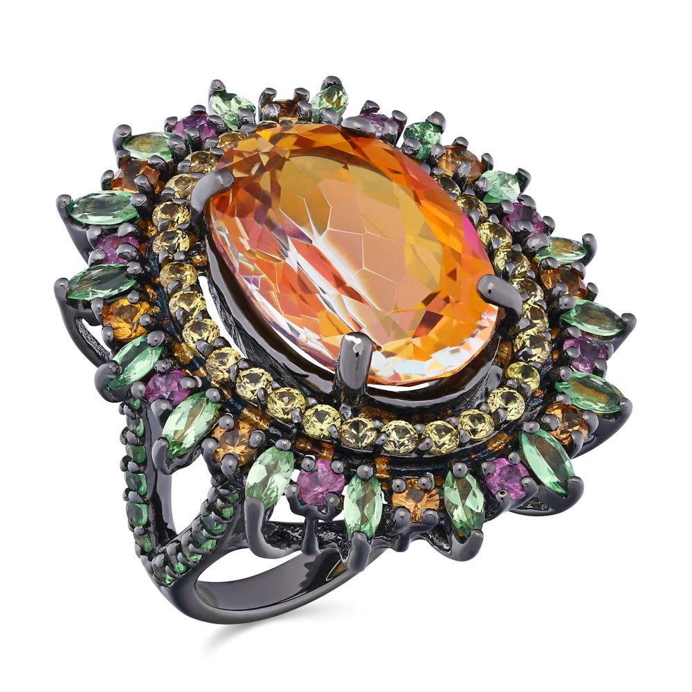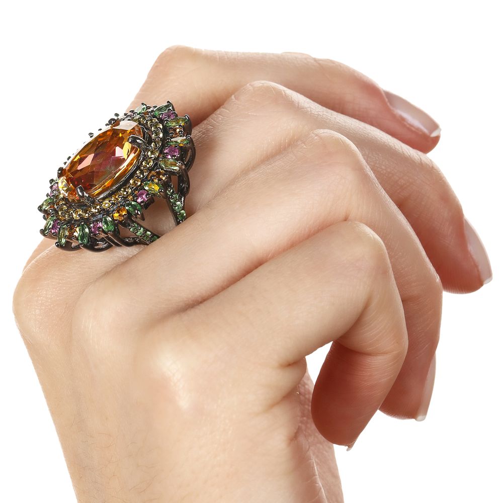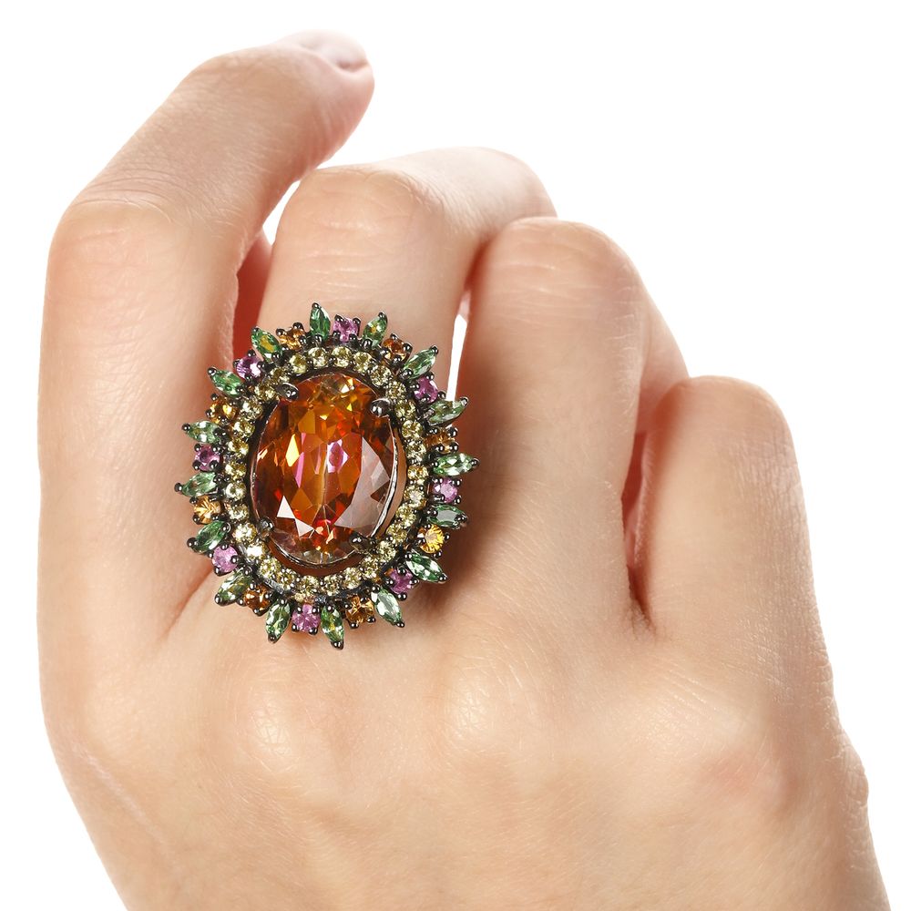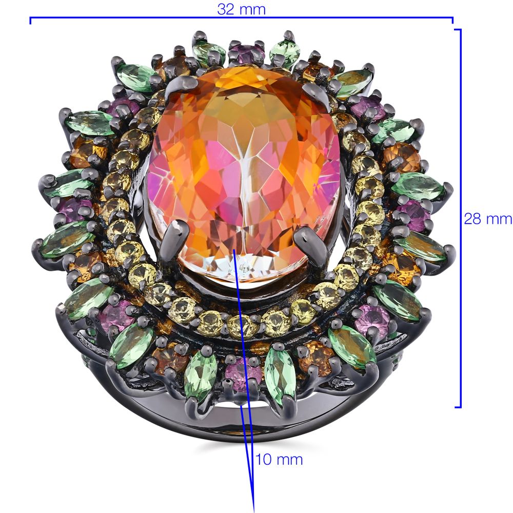 Em pedras:Topázio Mistico,Granadas Verdes,Safiras Coloridas (tot. aprox.18,91 Cts)