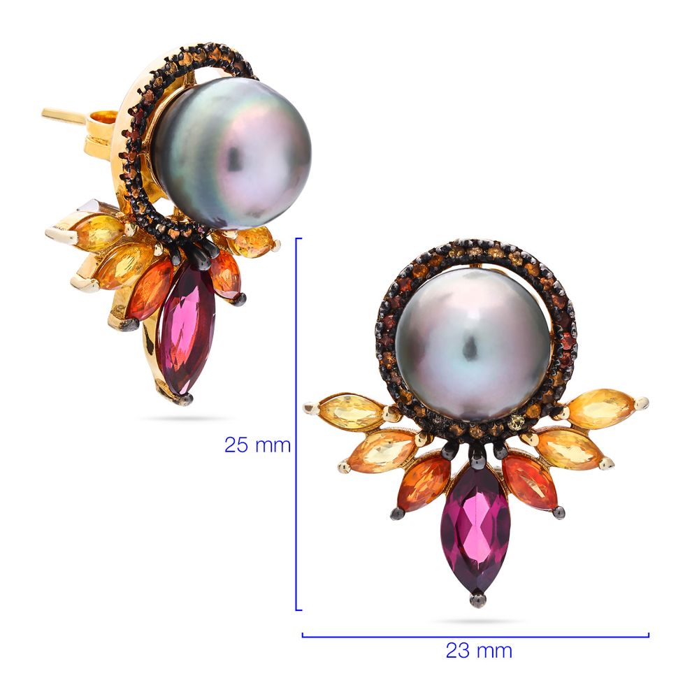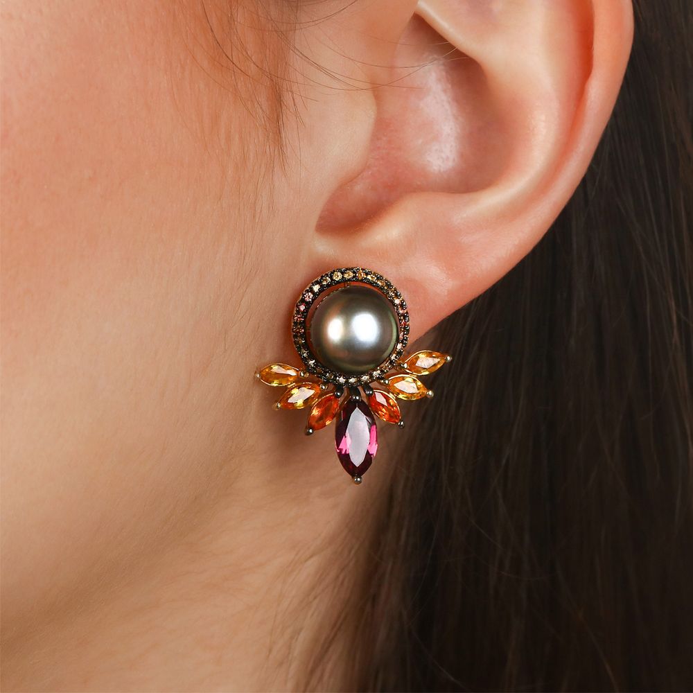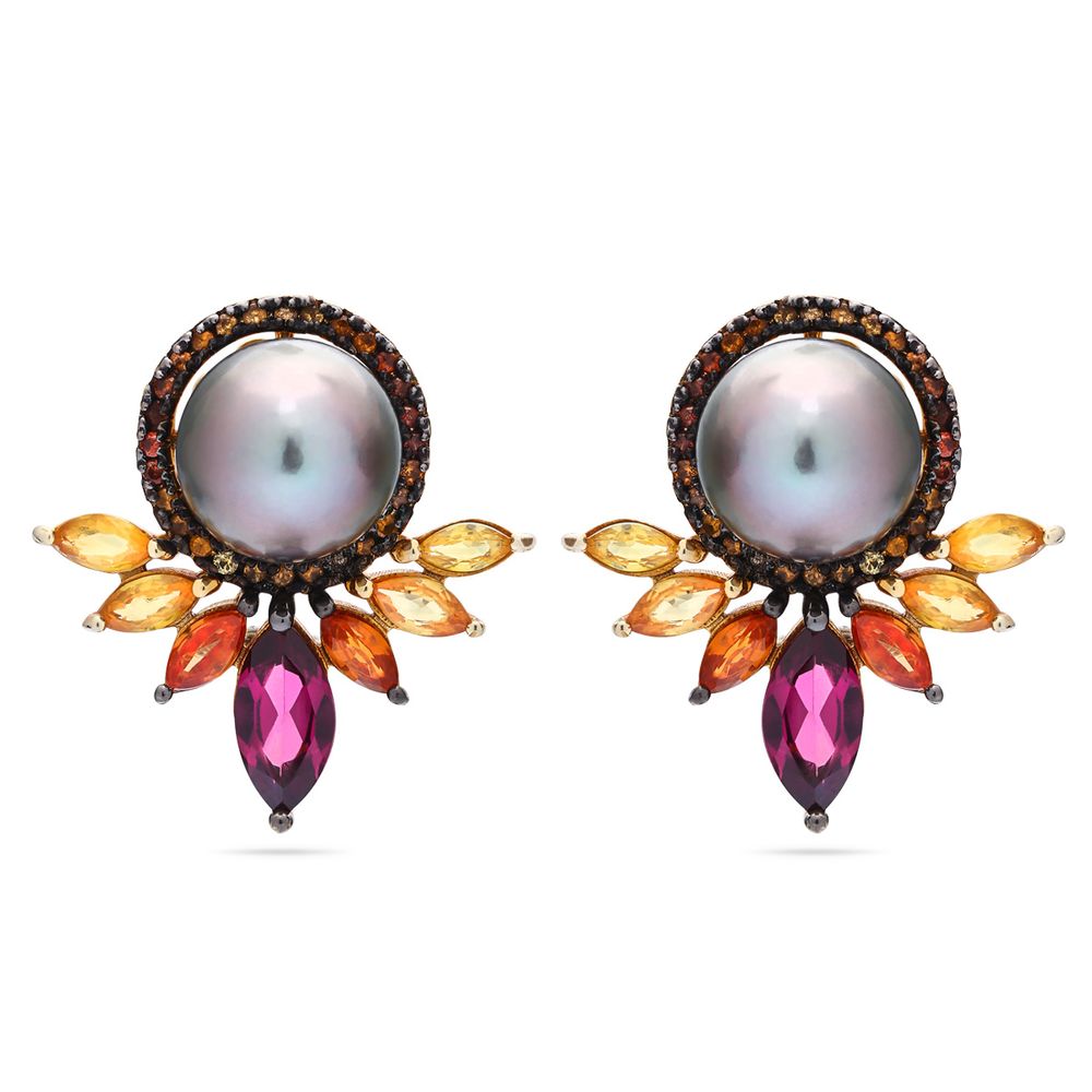 Em pedras: Pérola Cinza, Safiras Laranjas e Rodolitas Aprox.21,50 cts