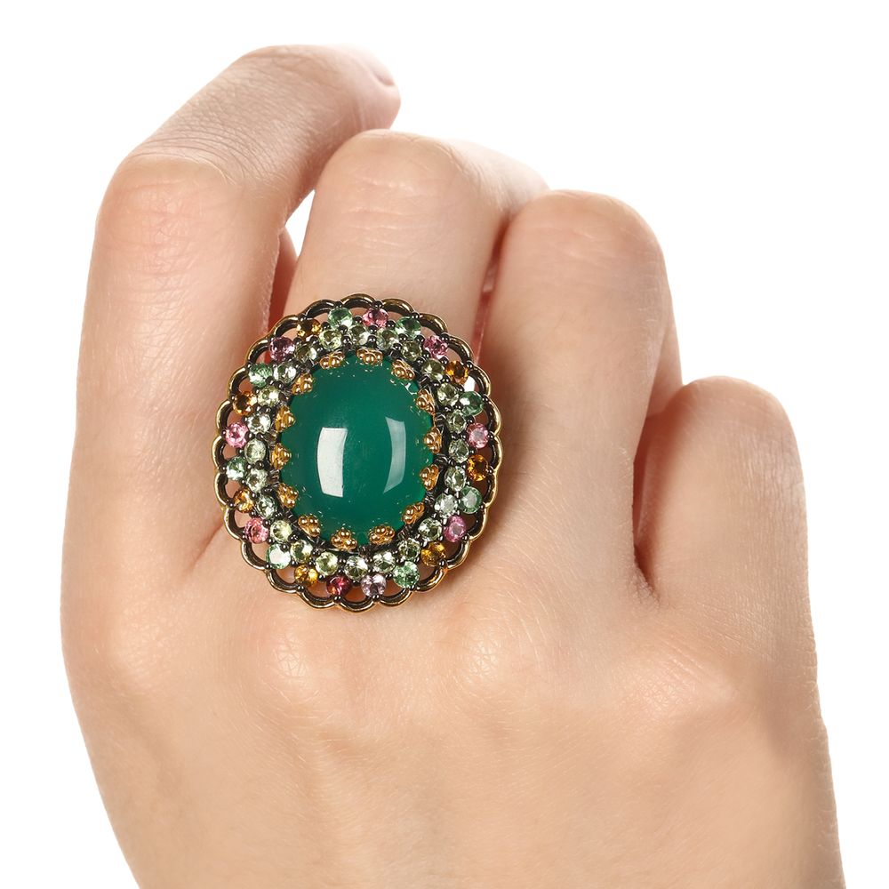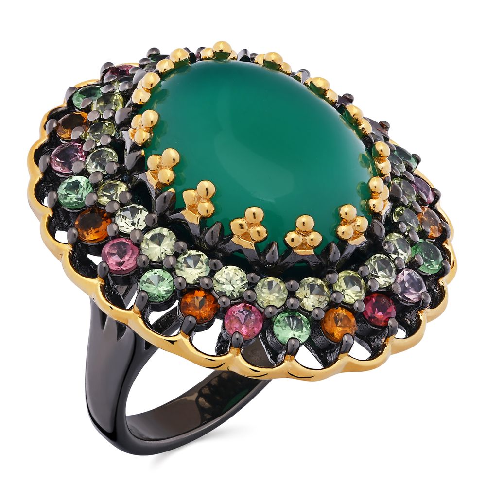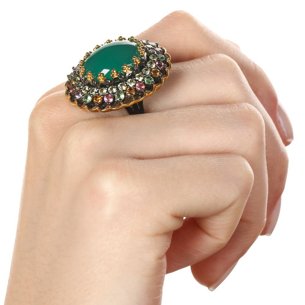 Em pedras:Calcedônia Granadas Verdes,Safiras Verdes,Turmalinas Coloridas ( tot. aprox. 16,9 Cts)